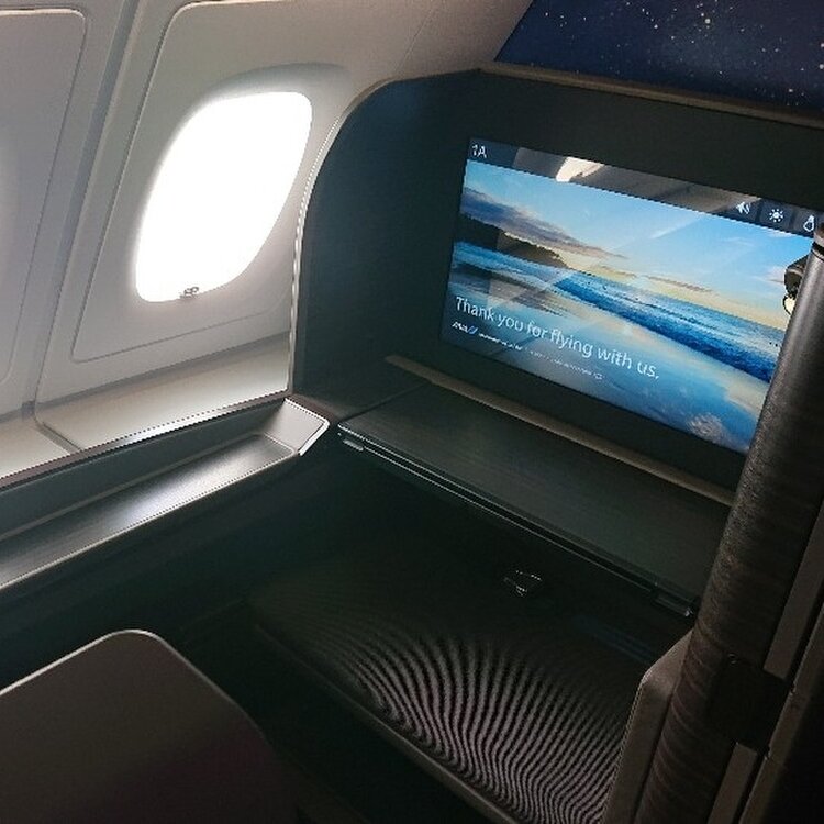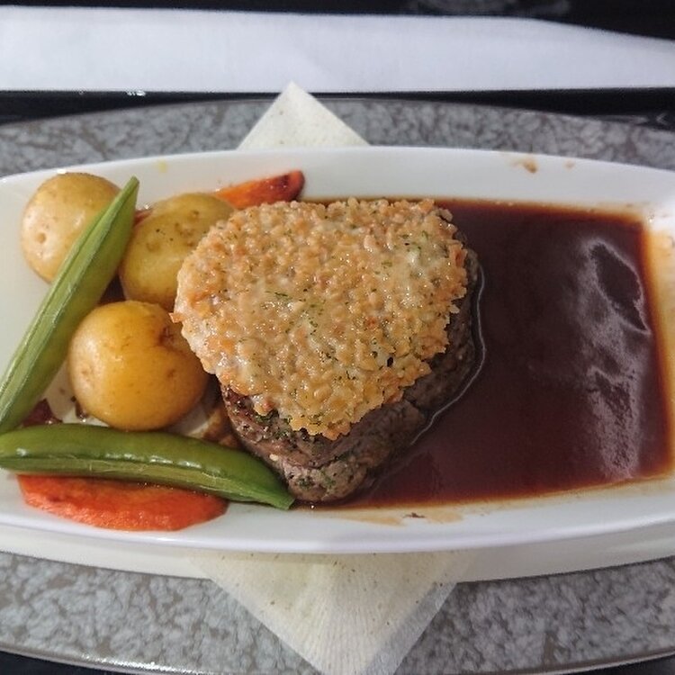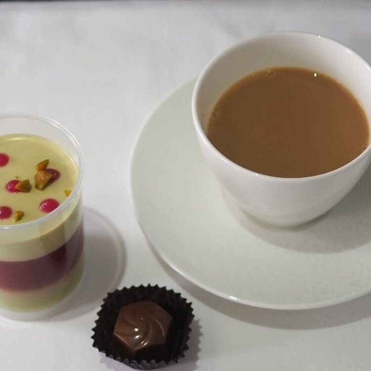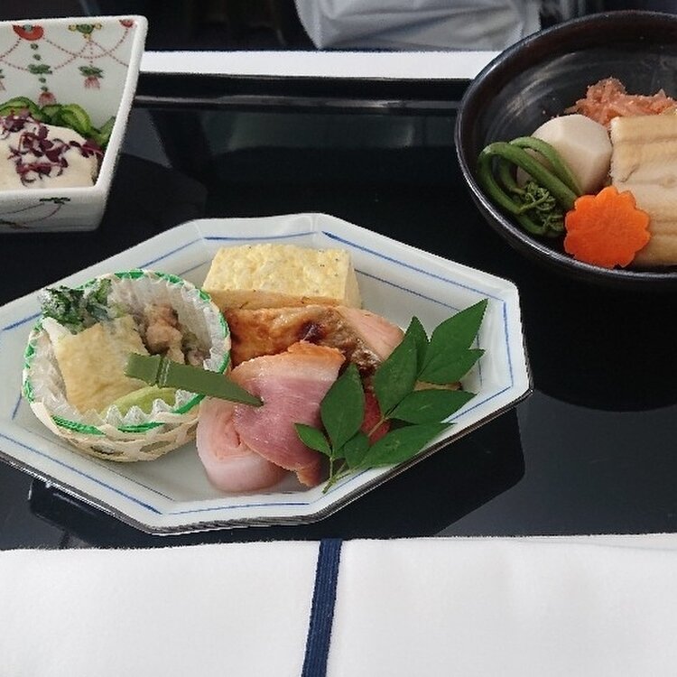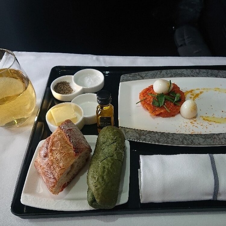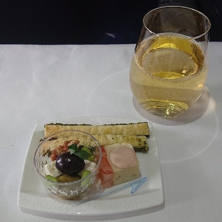 フライングホヌレストラン✈️ ビジネスクラスの機内食は4種類の中から事前予約 和食、洋食(メインが肉、魚、野菜) 私が予約したのは洋食の肉料理です🍴 フランスの名店「ラ グルヌイエール」とのコラボレーションメニューは、素晴らしく美味しい‼️ 肉の上のものは玉ねぎですが、これがまた美味しいのです😋 牛フィレ肉のソテー レホールの香るオニオンコンポートのせ ウェルカムドリンクはシャンパンとオレンジジュース、お酒が弱いので両方くださいとお願いしました😆 お祝いの日だけは、お酒が得意でない私もシャンパンを飲むことにしています🍷 バースデードリンクは シャンパーニュ・カステルノー・キュヴェ・ブリュット・レゼルヴ 結構飲んじゃったのですが、酔わないのはいいお酒だから⁉️ ビジネスクラスだけに、ドリンクも取っておきの銘柄を採用しています✨ アミューズは、 抹茶アーモンドパイスティック 海老ミモザテリーヌ オリーブと青豆、ホワイトチーズのハーブオイル オリーブを食べると、あぁ機内食の感じがする😊 アペタイザーは トマトと柑橘のコンカッセ カニとウズラの卵 爽やかな酸味で、トマトとカニが合っています🍅 飛行なしのイベントなので、シェフが乗り込み、お料理の話を聞くことが出来ます😃 一度火入れして、機内で二回目に火を入れ完成させる難しさがある、とお話ししてくださいました✨ 機長さんも客席を回って来られ、空への思いを語ってくださいまして、貴重な時間でした✨ 裏方のスタッフの皆さんの支えがあってこそ、素敵な旅をさせていただいています✨忘れられない誕生日となりました✨ #フライングホヌ#機内食#ビジネスクラス