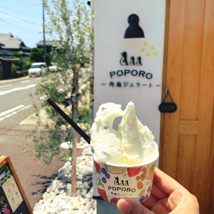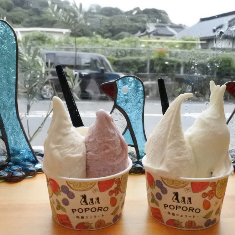 8月27日*ジェラートの日にジェラートを。 山口県の絶景スポット、角島大橋の近くにあるジェラート屋さん“角島ジェラート ポポロ“さん。 ことりっぷの記事で8月27日がジェラートの日だと知り、その日訪れていた角島で以前から気になっていたジェラート屋さんに立ち寄りました。 秋田のジャージー牛乳と山口の素材を使った楽しくてリッチなおいしさです。いろんなフレーバーがあって迷いますが、私はちょっと珍しい“柚子味噌“と季節限定かつこの辺りの特産の“夏みかん“。食べたいのを選んだらどちらも柑橘系、色も同じなので写真ではシングルみたいになっちゃいましたが、とってもおいしかったです。夏みかんはピール入りでさわやか、夏にぴったりの味。柚子味噌は柚子の香りと味噌の甘さ、コク、ちょっと塩気が合わさって絶妙。 前回角島に来たのが冬だったのでようやく今回訪れることができたジェラート屋さん。ぜひまた訪れたいなと思いました。 ・ ジェラートの日ということで、店員さんとじゃんけんをして勝つと、お店のシンボルのペンギンさんのステッカーをもらえました。 #角島ジェラートポポロ #角島ジェラート #角島 #下関 #山口 #ジェラート #Myことりっぷ #私のことりっぷ2022