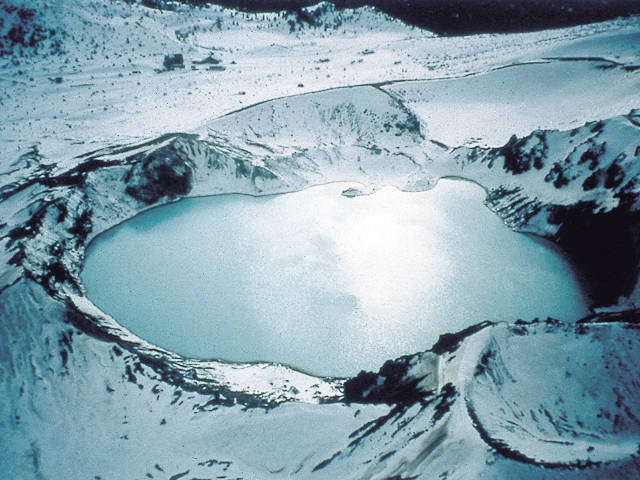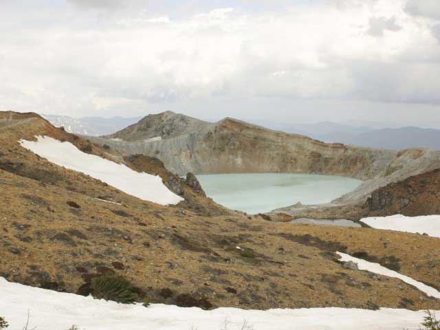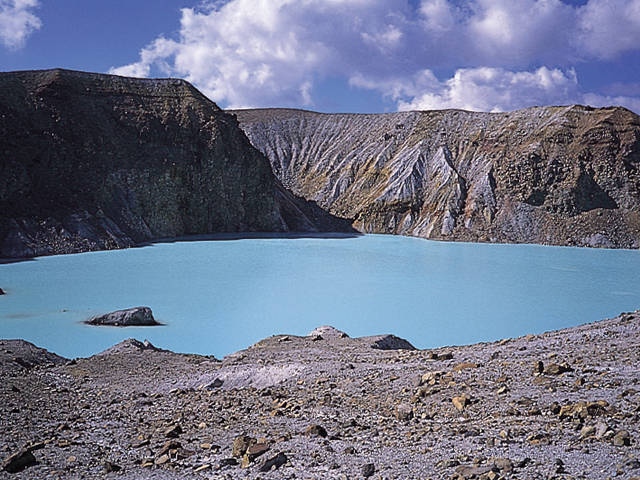 群馬・長野の両県にまたがる活火山。火口湖は人気の観光スポット