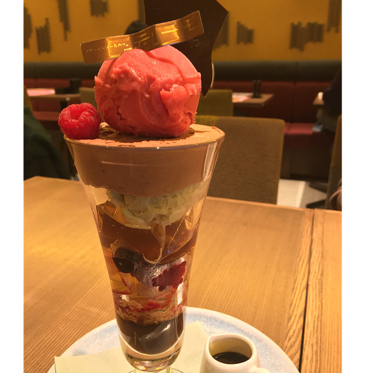 ☆京都ご縁めぐり 「パティスリー&カフェデリーモ」 *ピスタチオホリック <商品説明> ピスタチオ好きのあなたの為のパフェ。 〜ピスタチオホリック〜 ピエモンテ産のピスタチオVSシシリー産ピスタチオ。 クリーム、ロースト、アイス、あらゆる温度帯の ピスタチオとピスタチオとショコラの組み合わせ。 酸味にアプリコットとグレープフルーツを合わせました。 本物のピスタチオを体感せよ。 +紅茶POTのセット(アプリコットシトラス) *黒抹茶ショコラパフェ デザートは、憧れの「デリーモ」のパフェを頂きました。 流行りのピスタチオを贅沢に使ったパフェは、チョコレートとの相性も良く、アプリコットとグレープフルーツがアクセントになって、プラリネやグラノーラ等、様々な食感も楽しめました。 娘は、京都限定のチョコレートと抹茶を調和させた黒抹茶のパフェを頂きました。 抹茶アイス、白玉、あずきがのって、京都らしい和素材と濃厚なチョコレートのコラボが絶妙だったそうです。 大満足のデザートを頂いて、用事とお買い物を済ませて帰路につきました。 #京都ご縁めぐり#デリーモ#ピスタチオホリック#黒抹茶ショコラパフェ#デザート#ご縁めぐり