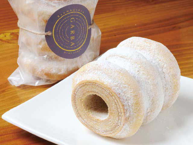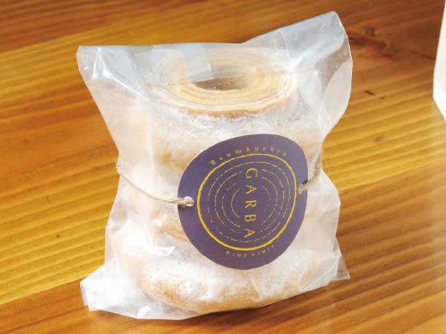 水上のブナの原生林をイメージしたバームクーヘン。シュガーパウダーのほのかな甘みともちもちとした食感が人気。