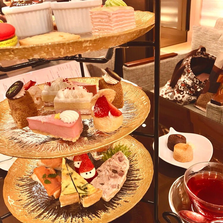 🎄お友達と初めての アフタヌーンティー☕️🍰 *・゜゚・*:.。..。.:*・''・*:.。. .。.:*・゜゚・*♪♪♪ いつものヴュッフェと違う場所へ 案内されて ワクワクしてきました♪♪♪♪ ホテル内は クリスマスカラーで とても可愛かったです🎄✨ ♡メニュー ♪♪♪1段目  ※キャラメルクッキー🍪       *ピスタチオのツリーモンブラン🌰       ※ストロベリーミルクレープ       *キャラメルプリン       *ピスタチオのマカロン ♪♪♪2段目 *ラズベリーレアチーズケーキ       *チョコロールケーキ       *ストロベリークリームの           ショートケーキ🍰       *いちごのシュークリーム ♪♪♪3段目 *いちごのサンタクロース🍓       *パチ.ド.カンパーニュ       *スモークサーモンと         クリームチーズのカナッペ       *キッシュ       ※柿と生ハムのサラダ🥗       *チョコレート&プレーンの                 スコーン ♪♪♪ドリンクは ロンネフェルトティー6種類等が メインで ワインやカモミールの香りのする とても美味しいものでした🍷        デザートがメインでしたが 素敵な雰囲気と ゆったりとした時間で 満たされた時間を 過ごすことができました(╹◡╹)♡🥀 #アフタヌーンティー#デザート#チョコケーキ #クリスマスランチ#ファンタジー #ロンネフェルトティー #ANAクラウンプラザホテル#Myことりっぷ
