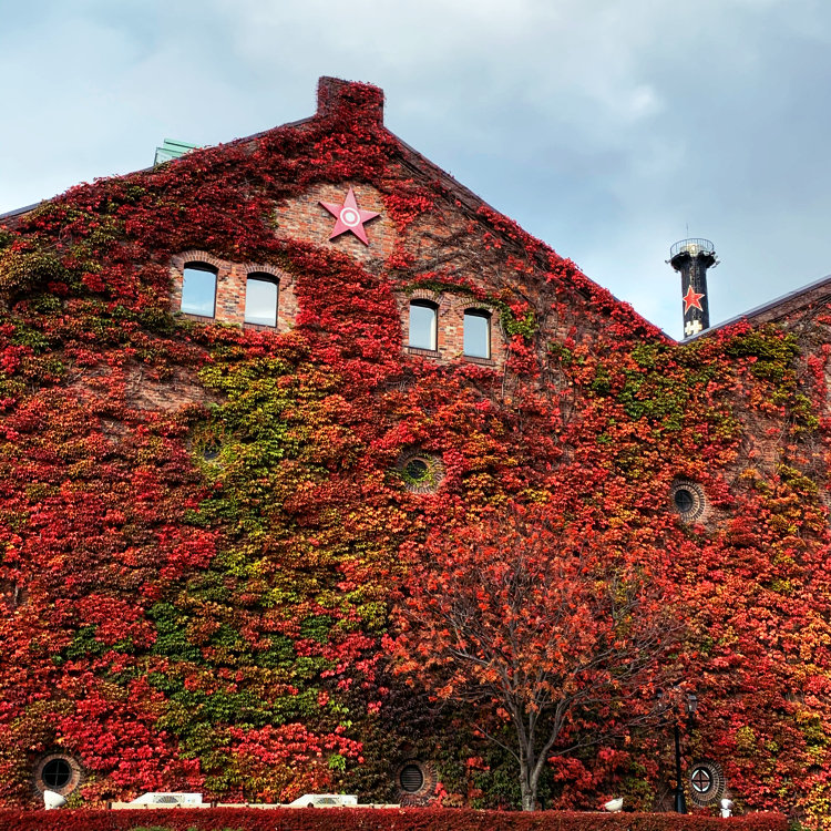 サッポロファクトリーレンガ館 2021.11.2 北海道神宮頓宮の後は、サッポロファクトリーの レンガ館❣️ こちらの赤いツタ見たくて行きました⸜(*ˊᗜˋ*)⸝ うわうわうわ~~~美しい😍❤️❤️❤️ 目の前に広がる赤に 胸いっぱいに ズッキュン(〃♥^♥〃キャャャア)~~~( ᵒ̴̶̷̤໐ᵒ̴̶̷̤ )( ᵒ̴̶̷̤໐ᵒ̴̶̷̤ )✨ 紅葉の風が一気に舞い込んで来たような🍁🍁🍁💨 赤がとっても 素晴らしかったです❤️❤️❤️ こちらの建物は、現在 耐震工事中で入れませんでした💦 その横には 現サッポロビールのルーツである醸造所に残る 明治時代築の赤煉瓦の工場☆*° 歴史を感じる建物にもキュンキュン♥️でした😆💕 開拓使時代の伝統の味を再現した醸造所直送の ビールやジンギスカンなど楽しめるようでしたよ☆*° この日は、行けてないけど、調べたら見学舘もあるようです☆*° かなり雨降ってましたが ハイテンションで写真 撮りまくりました( *´艸`) 雨;(´•௰•`)☂だけど、張り切って次行きますよ~~~🚶‍♀️💨💨💨 #私のことりっぷ #秋日和 #北海道 #札幌 #素敵な紅葉 #サッポロファクトリー #サッポロファクトリーレンガ館 #サッポロビール醸造所 #開拓使麦酒醸造所 #赤レンガ #お写ルン歩♬︎♡ #仲良しなお友達とふたりっぷ #サッポロファクトリー煙突広場