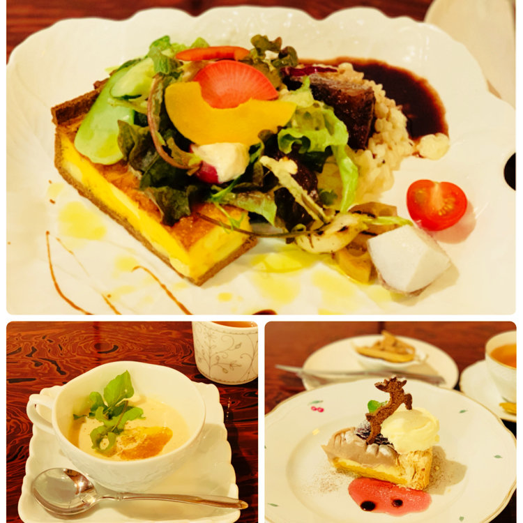 ༄レ・カーセ༄ キッシュセットB ☆ジャガイモとハーブのスープ 柿のピューレ入り ☆サラダ・キッシュ(安納芋と胡桃) リゾット・牛肉の赤ワイン煮ワンプレート ☆モンブランパイ🌰 ・ そうそう♡これこれ♡ 久し振りのレカーセさん✨ とても美味しかったですが 第1希望は他のお店さんでした。 しかし、ひと月前くらいから お席は埋まっていたそうです。 きっと、こちらも正倉院展の影響かな?と🤔 ・ 6人で連絡を取り合っていた時のトーク 一部抜粋🙇‍♀️ ♪最近、ひざが痛くて 病院へ通ってるの。 ♪私も以前ひざが痛くなってから HMB入のプロテインを飲んで、 ウォーキングを始めたよ。 ♪HMB!? ♪そんなプロテインあるんだね! ♪知らなかったわぁ ♪貯筋&貯金大切だね♡ ♪うんうん( ゚ー゚)( 。_。) ・ 因みに私は、ホエイ入のプロテインを 毎朝ヨーグルトに入れて𓎩𓌈 以前、職場にmyプロテイン、my筋トレ器具を 持参されていた方から 「プロテインは、髪 肌 爪の再生に良いから 女性こそ飲んだ方が良いんですよ」と ご参考まで📝😊 ・ 11:30~13:00までのお席 まだまだ話し足りないね。、、 しかし、お腹もいっぱい💦 ベンチでその後、2時間ほど♬︎ *´∀`)(´∀`*(´∀`* 鹿さんのお隣で🦌 (笑) ・ キッシュを食べたことない娘に プレーン、アボカドと海老を🎁 一見 甘いチーズケーキのような見た目からの 味のギャップ…。 あまり好きではないとのことでした😌 ・ #キッシュ専門店 #レカーセ #春日大社 #若草山 #奈良県 #奈良公園の長老? #ろくさん #お会い出来ず… #私のことりっぷ #秋日和