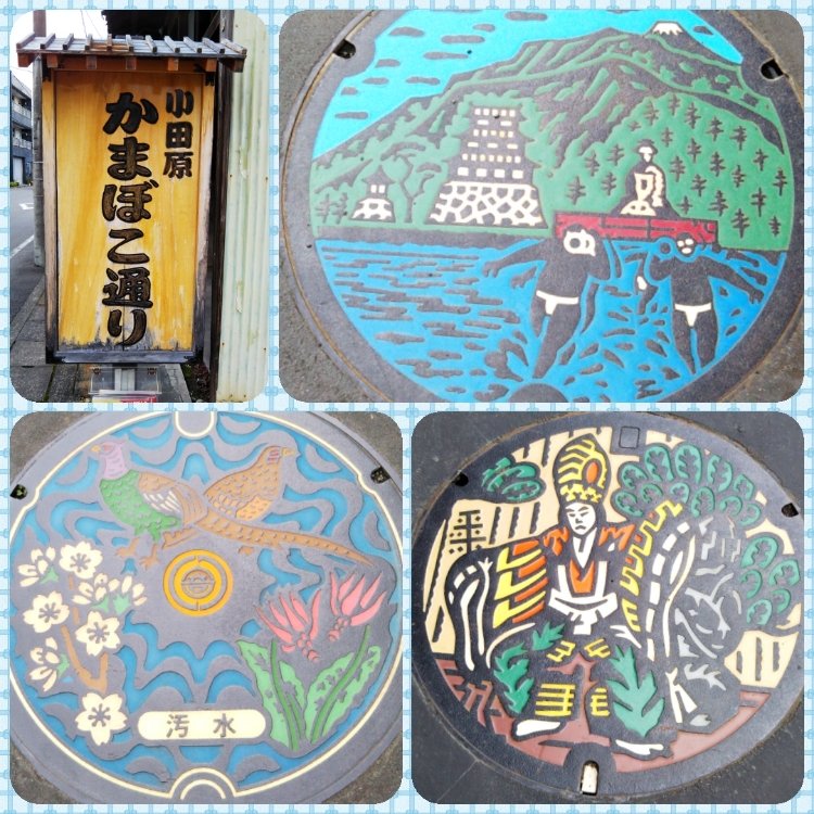 🏯小田原へ行こう🏯 昨年10月に小田原・箱根方面に行く予定でしたが、巨大台風🍃🌀☔️が直撃‼️ ご当地マンホールも調べてあったので、今回チャレンジです。 小田原は戦国時代、北条氏が五代100年に渡って治めたところです。 〈皆が平和に暮らせる理想国家づくり〉を目指した北条氏ですので、小田原には様々な人々が集まり隆盛を極めていました。 4代目の北条氏政の時代は関東一円を支配していました。 それで小田原市は氏政の弟たちが治めたまちと姉妹都市になり、マンホールを交換することになりました。 ㊨上……小田原市のマンホール。デザインの由来は一つ前の投稿に書いてありますので、興味のある方はどうぞ😆👍️➰ ㊨下……東京都八王子市。氏政の弟 氏照が治めた場所。デザインは【八王子車人形】八王子市で伝承されている人形劇。 文楽の人形を『ろくろ車』と呼ばれる車を収めた箱に腰かけて、後ろの黒子が一人で操ります。人形が舞台に足をつけて演技が出来るため躍動感が生まれるそうです。 ㊧下……埼玉県寄居町。氏政の弟 氏邦が治めた場所。町の花のカタクリとヤマザクラ、町の鳥キジがデザインされています。この桜🌸とカタクリは以前、投稿しましたので興味のある方は #鉢形城 でどうぞ😆👍️➰ 一つ前の投稿の #なりわい交流館 の一本裏の道〈かまぼこ通り(千廣小路)〉に三つのマンホールが点々とありますので散策しながら探しました。 【なりわい交流館】のある道は旧東海道ですので、この辺りは蒲鉾屋の本店が多々あります。蒲鉾屋だけではなく食に関する老舗の店が軒を連ねています。 #小田原 #マンホール #カラーマンホール #ご当地マンホール #かまぼこ通り #小田原の食の原点 #かつて魚市場もあった