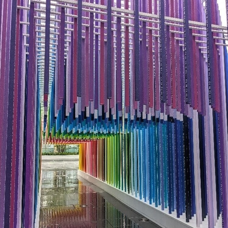 アート作品【100色の道】 高輪ゲートウェイ駅の改札を出ると すぐに目に入るカラフルなゲート型のアート作品 素敵ユーザーさまのご投稿を拝見して とても見たかったので 4年ぶりにこちらの駅に降り立ちました🚉 * 無数の線で作られたインスタレーションには 1本1本に2025年から 100年先までの年号が刻まれています 100年の流れが100色のグラデーションで表現され 眺める角度や歩く場所によって 数字が見えたり 消えたり 不思議な体験が出来る 美しいアート作品です 🌈❤️🧡💛💚💙💜🩷🌈 * 手前には水遊びが出来る噴水がありますよ⛲️ 音楽に合わせて噴水がダンスするように動いていました🎶🩰 リフレクションがとても綺麗に見えました🌈 * 東京在住のフランス人建築家/アーティスト/デザイナー の エマニュエル・ムホー氏の作品です ⚠️作品の展示は7月21日(㊗️海の日)までになりますので お急ぎくださいね‼️ * 大荒れの週始まりになりましたね☔️ 今日は 心が晴れるような投稿をしたいと思いました 🌈💫🌈💫🌈💫🌈💫🌈💫 皆さま 台風の影響はございませんか 夕方になって仙台は少し明るくなって来ました☺️🔆。° * 2025.7.2撮影 * #アートな景色 #ことりっぷ東京 #高輪ゲートウェイ駅 #高輪ゲートウェイシティ #100色の道 #エマニュエル・ムホー #水遊び噴水ショー #POPJET #街中アート #インスタレーション #携帯写真 #fumitubu #ふみつぶ〜ぬ #ふたりっぷ東京👭 #ゆるり夏時間