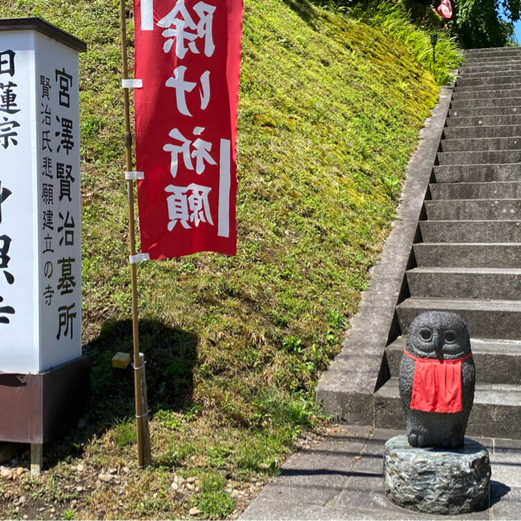 【身照寺】宮沢賢治さんの菩提寺です 御朱印を書いてもらうあいだ お参りをさせてくださいました いただいた御朱印帳は 銀河鉄道をモチーフにしており とても美しいものでした🌌⟡.· * 扉には『世界がぜんたい幸福にならないうちは 個人の幸福はありえない』と 賢治さんの思想が刻まれています。 美しさの中に悲しみをたたえた賢治さんの物語には 仏の教えを守ることで、誰もが安心して暮らせる世の中になると考えた深い信仰心が反映されています。 * 写真3枚目は御朱印 右側は挟み紙 これまた素敵すぎます⟡.· * 境内の中には 賢治作品に何度も登場する ふくろうさんが沢山います🦉✨(写真5枚目) ふくろうは 花巻市の鳥です。 * お墓を直接写真に撮ることは控えましたが 墓石にちょこんと置かれた小さなふくろうさんだけ撮りましたよ🦉(写真4枚目) * 賢治さんの全遺骨が納められたお墓にお参りすると 『イツモシズカニワラッテ』迎えてくれている賢治さんを感じました。 お墓の前にはベンチが用意されて ゆっくりお話しすることができます。 * 境内には立派なしだれ桜🌸 満開の様子は スポットから 素敵ユーザーさまのフォトでお楽しみください。 * 身照寺 岩手県花巻市にある 宮沢賢治の菩提寺。命日である9月21日には毎年墓前供養会が行われ、国内外から集まった多くのファンが宮沢賢治を偲ぶとともに、彼の願いであった世界全体の幸福を祈ります。 (参列自由、事前申し込み不要) * JR花巻駅より循環バス 星めぐり号で19分 石神町下車 すぐ * #開運旅 #ことりっぷと花巻 #花巻 #続気になる花巻 #身照寺 #宮沢賢治 #銀河鉄道の夜 #御朱印 #御朱印帳 #お墓参り #携帯写真 #カメラ #fumitubu #ふみつぼ