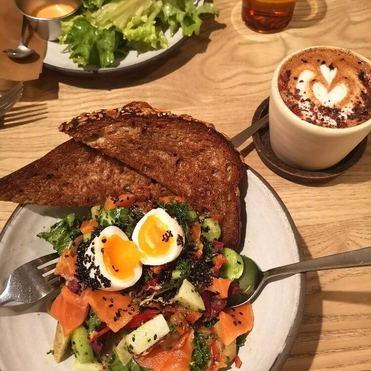 立町welcomeと荒町oval cofeee standがコラボした新店舗のHEY。仙台で話題を集めているだけあって、朝から賑わっている店内༄ . 立町の時から好きだったmapleを注文。目玉焼きにメープルシロップの組合せはアメリカの朝食で定番🍳オーガニックレストランやクラフトフードのトレンド発祥地として有名なオレゴン州ポートランドのカフェを感じさせる。 . ☑︎maple(baked egg、bacon、baked potato、with maple syrup) サクサクしたトーストの上に目玉焼き、カリっとこんがりソテーされたベーコンとスライスされたポテト。クリームチーズにメープルシロップが添えられている༄ . 目玉焼きにメープルシロップこれが合う。ベーコンの塩気とメープルの甘さが絡む塩梅も良い。終盤はトーストにメープルシロップをタップリ染み込ませて完食。美味すぎる✨ドーナツも逃さずテイクアウトで༄ . 仙台に来たら必ず寄りたいカフェだが、人気店ゆえに並ぶ覚悟は必至だろう。 #cafe#opensandwich#maple#portland#welcome#oval#heysendai#miyagi#sendai#japan#カフェ#カフェ活#カフェ巡り#カフェ好き#トースト#サンドイッチ#ことりっぷ#ことりっぷ仙台#わたしの街#東北カフェ#宮城カフェ#仙台カフェ#東北#宮城#仙台#宮城県#仙台市