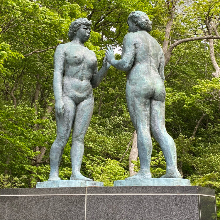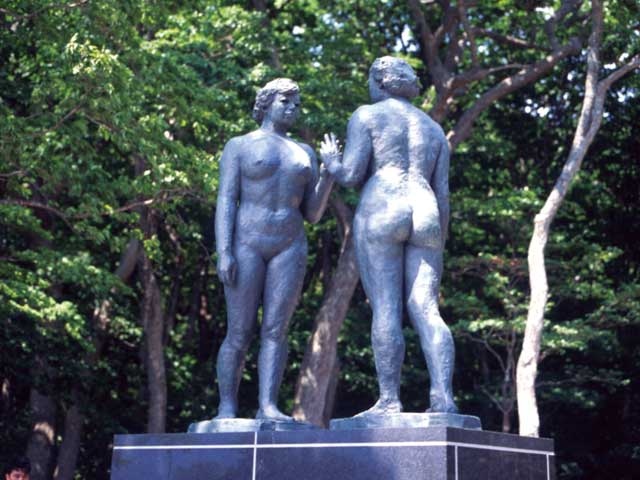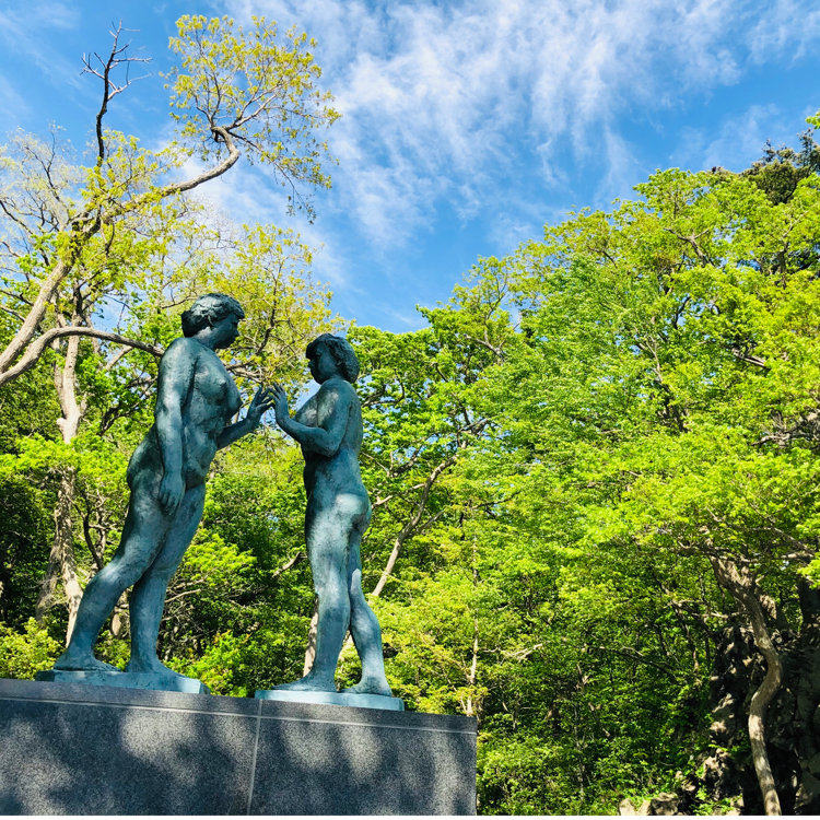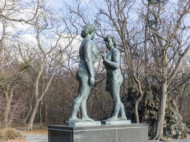 十和田湖のシンボルで、高村光太郎の最期の作品。湖水に映る姿をイメージして、2体の同じ像が向かい合っている。十和田湖の観光で最も立ち寄る人が多い定番スポットだ。