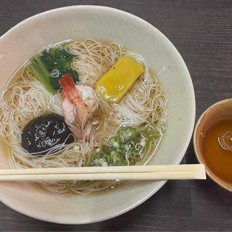 古都 奈良へ 「そうめん処 森正」 *にうめん(温かいそうめん) *柿の葉寿司 大阪からJR→近鉄→JR万葉まほろば線に乗り換えて、奈良県桜井市三輪へ。 友達が「大神神社」にお詣りしたいと言うので、喜んでついて来ました。 三輪駅到着は10時過ぎだったのですが、ゆっくりお詣りしたいので、先にお昼を食べようかと「そうめん処 森正」さんで聞いてみたら、食事も準備出来ますとの事でした。 ただ、柿の葉寿司をお土産に買うつもりだったので、むかごごはんを食べたかったのですが、残念ながら未だ炊き上がっていませんでした。 結果、にうめんだけではと3人共、柿の葉寿司を一緒に頂きました。 手延べそうめんの発祥と言われる三輪そうめんに三つ葉、しめじ、天かすがのった、地元奈良の醤油やみりんを使った温かいお出汁のにうめんと自家製の柿の葉寿司のセット。 どちらも美味しくて、あっという間に皆完食しました。 築100年のご自宅を改修して、もともと庭だったスペースを活用したお店は奈良麻の暖簾がかかり風情が有ります。 お土産にふし麺を買って帰りました。 身体も心もほっこりして、本来の目的、「大神神社」に向かいました。 #古都 奈良#三輪#そうめん処 森正#にうめん#柿の葉寿司#ふし麺#冬を味わう