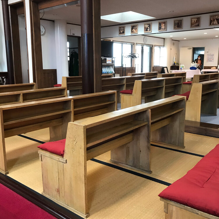 畳敷きの礼拝堂と尖塔をもつロマネスク様式
