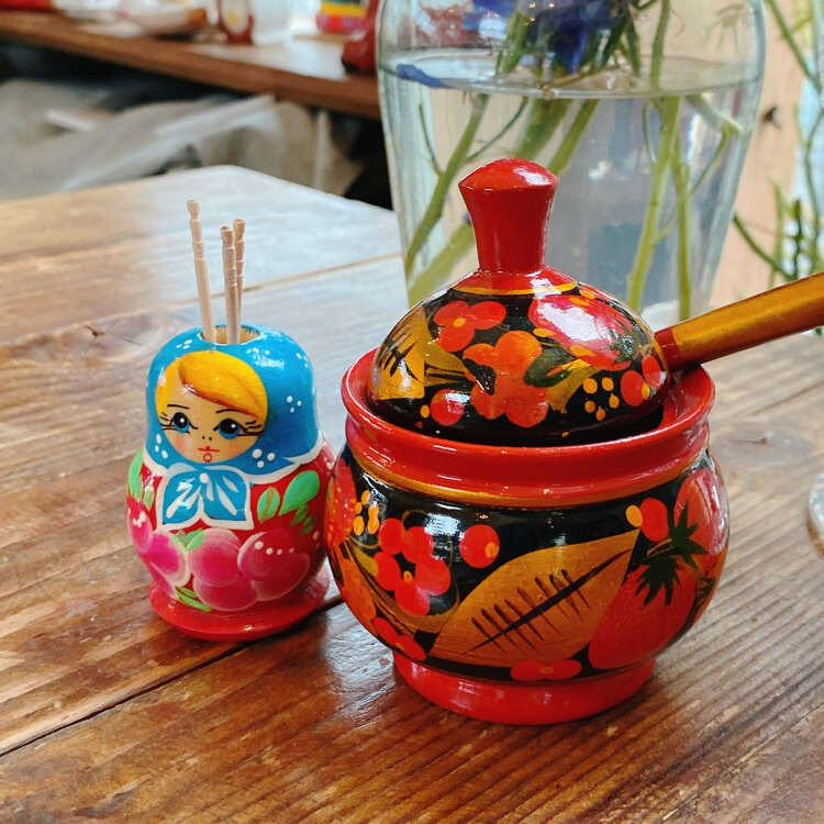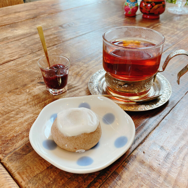 ロシアンカフェ🇷🇺『ヨージク』🦔 ラグマンを食べた後のデザートは、【プリャーリニキ】と言うライ麦生地の素朴なお菓子です🍪 (前回、思わせ振りに終わらせて、すいません🙇‍♀️) 飲み物は、ロシアンティーで🫖運ばれて来た時に、ロシアの方かなぁ?と思われる店員さんが、流暢な日本語で「ジャムはストロベリー、ブルーベリー、ラズベリーが入っていて、飲み方は…」の所から周りの人の声とマスクして話されてるので、肝心の飲み方が聞こえなかった💧 聞き返せばよいのに、始めから知ってましたみたいな顔してしまい💦うっすらと「口に含んで」と聞こえたので、 ちっちゃなスプーンでジャムを口に含んで紅茶を飲むスタイルを続けました😅(帰ってから調べたら、それであっていたようです☺️何度か紅茶に入れたい衝動に駆られましたが) プリャーリニキは、シナモンが少し効いていて、蜂蜜だけのほんのり甘いお菓子でした💗ただ硬いので💦フォークをガツンガツン言わせないと食べられません(笑)ロシアンティーとの相性はすごくよかったです😊寒い地方なので、お菓子も身体を温める物が好まれているんですね😊 「ヨージク」はロシア語で「ハリネズミ」の意味だそうで ロシアではハリネズミが身近な動物だそうです🦔 今回、行った時は、ハリネズミ感とロシア感が隅に追いやられていたので、三枚目から五枚目の写真は前回行った時に撮った写真です🪆🦔 スイーツは、他にクランブルクッキー(東鳩オールレーズンみたいだった)🍪、レーズンのスハリキ(ビスコッティ)ロシアのクレープ、サワークリームのピロシキがありました💗 次回はやっぱりピロシキだなぁ💕 #世界のごはん #カフェヨージク #ロシアのお菓子 #ロシアンティー