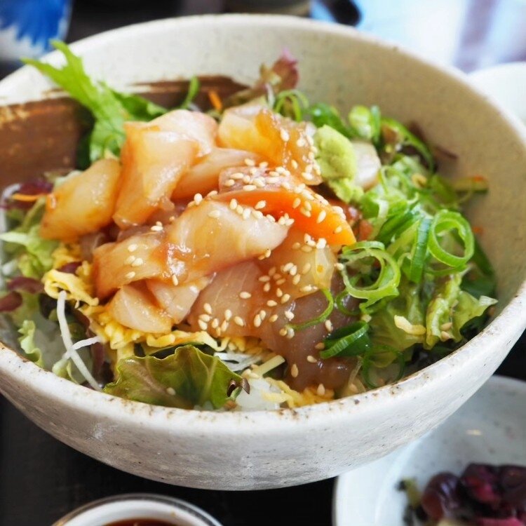 天橋立の入り口、廻船橋が目前という好立地。名物とり貝丼(5~8月のみで数量限定、なくなり次第終了)のほか、海鮮丼やお造り御膳など、地元で獲れた新鮮魚介の料理が気軽に食べられると人気。