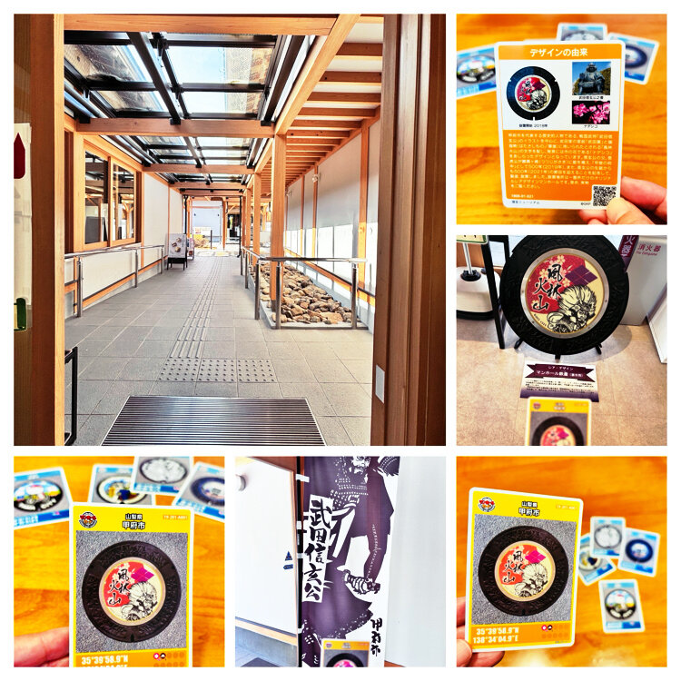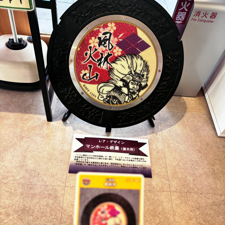 信玄ミュージアム❣️ #マンホールカード 🕳️もらえますよ 堀田古城園となり❣️カフェも併設☕️🍰されてます😊 宝物館は有料ですが、こちらのエリアは 無料です🆓 🪧マンホールカードの記載内容🪧 武田信玄公之像 設置開始 2018年 甲府市を代表する歴史的人物である、戦国武将「武田信玄公」のイラストを中心に、武田家の家紋「武田菱」と旗指物(はたさしもの/軍旗)に用いられたとされる「風林火山」の文字を配し、背景には市の花である「ナデシコ」 をあしらったデザインとなっています。信玄公の父、信虎公が躑躅ヶ崎(つつじがさき)に館を構え、「甲斐の府中」として500年(2019年)、また、信玄公の生誕から も500年(2021年)の節目を迎えることを記念して、 製造、設置しました。設置場所は一箇所だけのオリジナ ルレアデザインマンホールです。是非、実物 をご覧ください。 🪧信玄ミュージアム ホームページ🪧 国史跡武田氏館跡に関わる歴史や史跡の見どころを紹介するガイダンス施設として、平成31年4月5日に開館しました。施設は、展示室を中心とした木造平屋建ての新築建物と、昭和8年に料亭旅館として建てられた旧堀田古城園があります。展示室は、歴史に詳しくない方でも気軽に戦国大名武田氏がくらした館の歴史や概要を知ることができる常設展示室と、出土品などから、より専門的に歴史を学べる特別展示室があります。特別展示室のみ有料です。 #春色さがし #らんらんらん #世界はステキな出逢いにあふれてる #オトナの遠足 #オトナの社会科見学 #甲府市北杜市ことりっぷ #甲府駅 #あずさ2号
