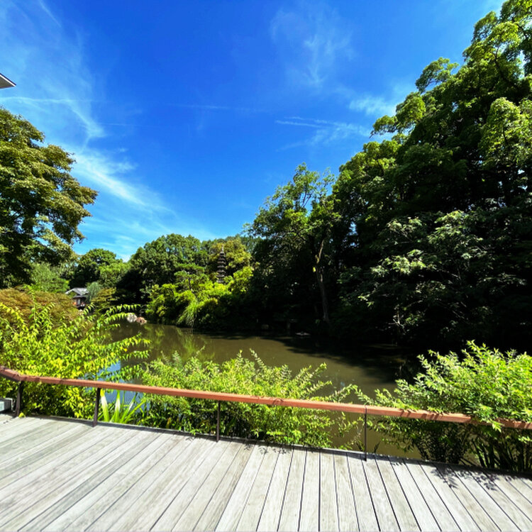 自然と歴史を伝える緑豊かな東山に位置。コンテンポラリージャパニーズをコンセプトにデザインの館内