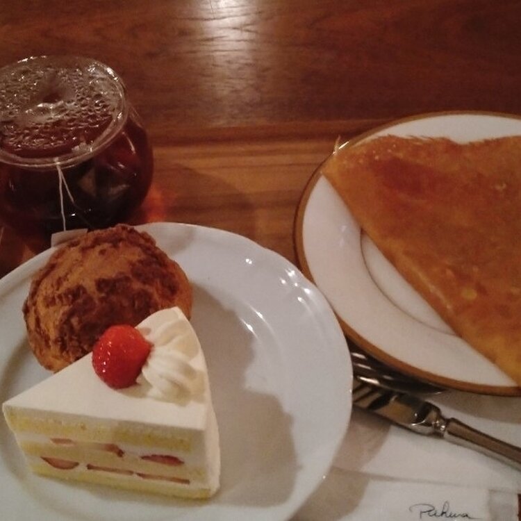 代々木公園から徒歩数分のカフェ、「ホルン」さん☕🍰  人気のカフェで、店頭にはいつも行列が。。。  この日は、3人並ばれていましたが、少な目でしたので待つことにしました。  イートインは、B1にある穴蔵の様な雰囲気の場所です。  天井からは、お店の名前にもなっている、レトロなホルンを電灯にしてぶら下がって、楽しい🎵  店頭でケーキ、パン、焼き菓子をオーダー、お土産もこの時お取り置きがマストです😌💓  そして、次に進みドリンクを受け取ってB1にセルフサービスとなっています。  そうでした!💡 午後からは人気の焼き立てクレープが楽しめるんです。  目の前で焼かれるクレープ、甘いバターとお砂糖の香りはスル〜はできず、追加することに。。  たっぷりトレイにスイーツとティーポットをのせ、ソロリソロリ階段を降りました〰😓  バターに、シナモン&シュガーのシンプルクレープは、熱々がお勧めです。  テイクアウトも出来るようです。 前の投稿に反して、この日は、スイーツ過食投稿となりました〰💦  勿論ランチは抜いています。😌  #人気カフェ#この辺りの路地巡りは楽しい#人気のスイーツ#焼き立てクレープ#カリッとシュー皮#苺のパイは事前予約#こちらもお勧め#すい#おやつの時間#mg#穴蔵カフェ