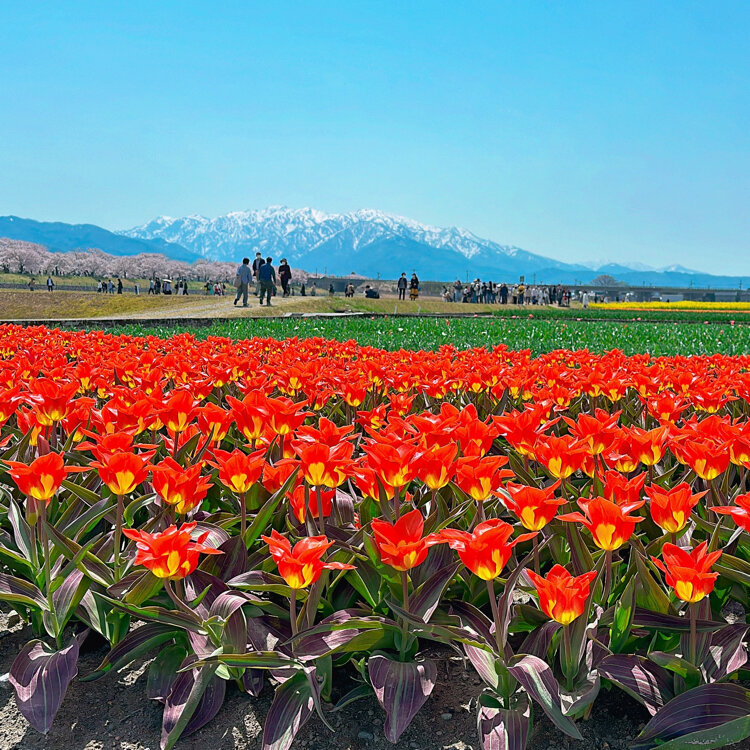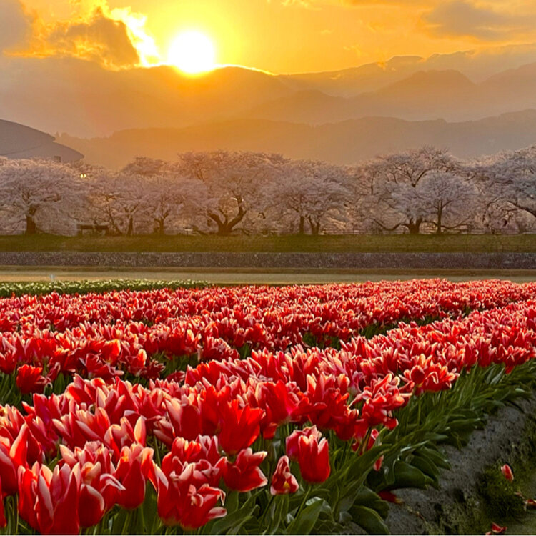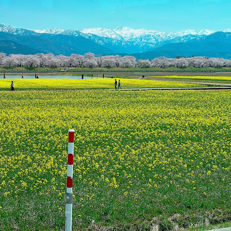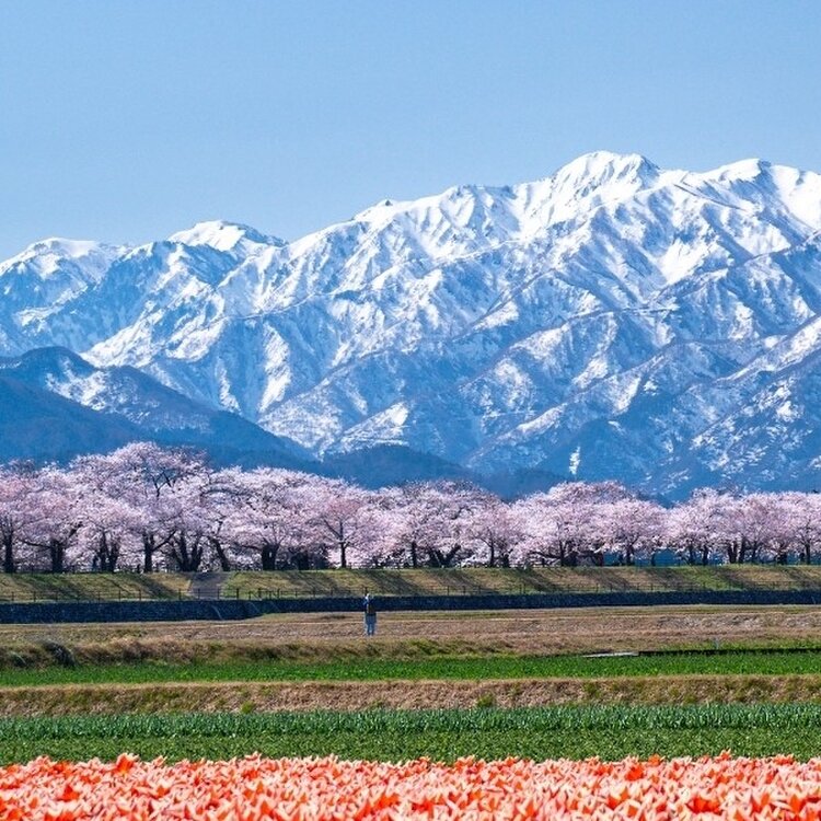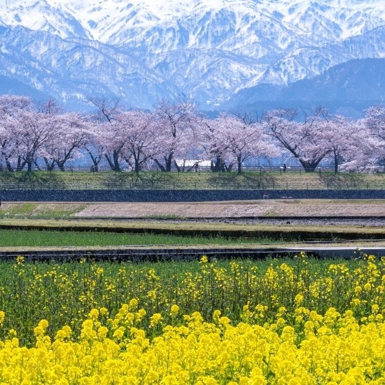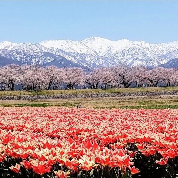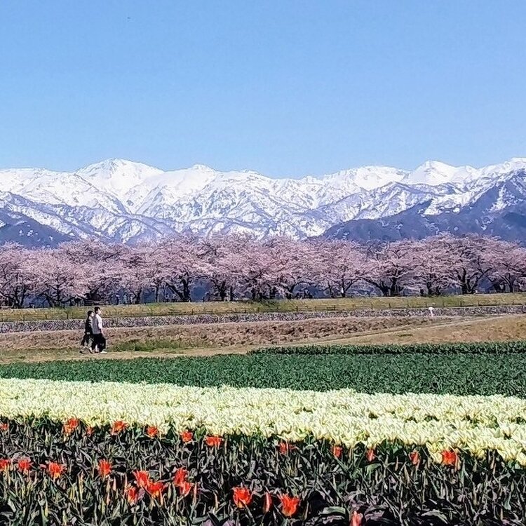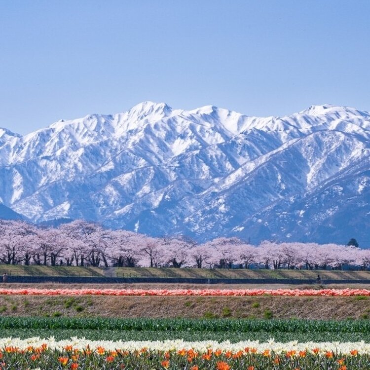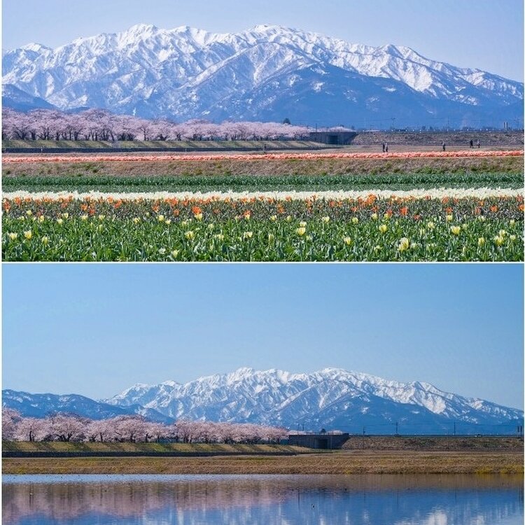 🌸富山県 朝日町 あさひ舟川「春の四重奏」🌞昼の何重奏? 旅行するとよく思います。 「あー、なんていい所なんだろう✨また来よう!早く戻ってこよ!」 でもなかなか行けずに何年も……あるあるですよね(´・ω・`) 年末に来た富山県❄ 見たい絶景がある、今再びの富山へ。 と、言うわけで戻ってきましたꉂꉂ👏 富山県ユーザーのえこさんに「朝日町の桜はどうですか?菜の花咲いてますか?」質問に気持ちよく答えてくれて、 ❀四重奏にはなってない❀ (チューリップは咲き始め、菜の花は咲いてない) ✿桜は2-3部咲き✿ 🏔立山連峰はある程度ハッキリ見える🏔 条件はパーフェクトでは無いけれど、もうとにかく行っちゃいましたꉂ😁 2年前、✪ ユーザーのhelmikuuさんの投稿を見て「いつか行くぞ*.🌷.*」とクリップして📎 そして今…とりあえず、一旦行ってみることにしました~ꉂꉂ😄 🏔🏔🏔🏔🏔🏔🏔🏔🏔🏔🏔🏔🏔🏔🏔 🔹🔹🔸🔹❀🐦✴ 🔸🔸 ✴🐦❀🔹🔸🔹🔹 🌸🌸🌸🌸🌸🌸🌸🌸🌸🌸🌸🌸🌸🌸🌸 🌷🌷🌷🌷🌷🌷🌷🌷🌷🌷🌷🌷🌷🌷🌷 チューリップは球根を出荷するので、花に養分を取られないよう4月中に花を摘むそうです🌷 そしてチューリップは病気になりやすい花でもあり、畑に入ってしまうと靴裏を媒介して病気が広がったりすることにとても気を遣うそうで、畑へは立ち入り禁止だそうです🚧📛 また土日は混み合うため、町の病院と朝日中学が🅿️となり、そこと泊駅からシャトルバスが運行されます🚍 毎年必ず見られる訳では無い「春の四重奏」、見られたら幸運な絶景なんですね😉⌒* 【写真】 冠雪した立山連峰は…3枚目だけ正面に見える朝日岳や白馬岳、他は向かって右端の僧ヶ岳や北駒ケ岳を切り撮っています🏔 チューリップは畑2枚。 菜の花は離れた所に畑2枚。 畑を高速道路寄りに進むと、水を張ってくれてある田圃2枚。(多分毎年) 桜は良くて5部咲きで上とかは枝に花も無かったり💦 少しトリミングして花の多めの所に寄せて縦構図切りました✂️ 立山連峰はキレイで、空は晴れでした⸜🔆⸝‍ 昼の2.5重奏ってところですが、キレイでした🌸*.🌷.*🏔 (2022年4月9日撮影) #富山県 #朝日町 #あさひ舟川 #春の四重奏 #立山連峰 #春風さんぽ #ヒーリング旅 #Myことりっぷ #桜 #富山きときとトリップ22春