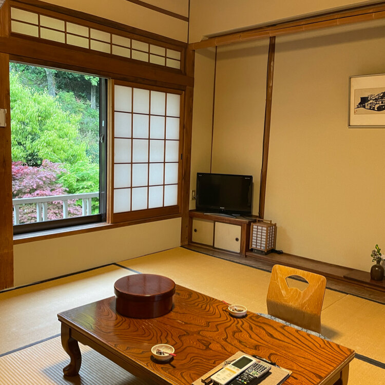 由布岳の麓、金鱗湖畔に佇む老舗宿。静かな庭の中のお部屋でごゆっくりお寛ぎください。