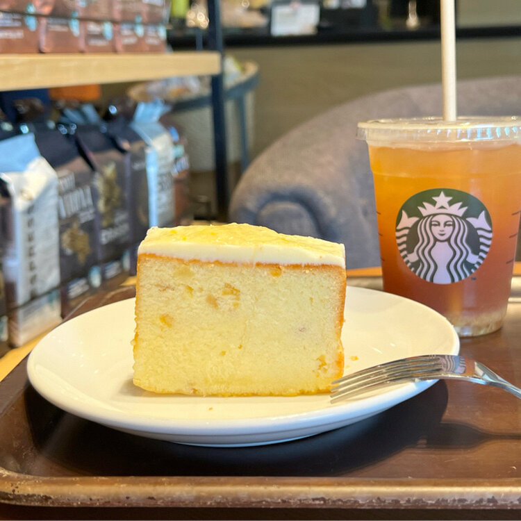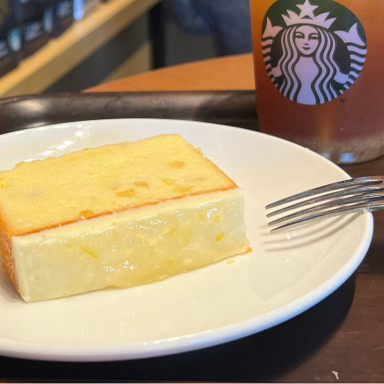 【スターバックスコーヒー】 chi-koさんの投稿で今年も🍋レモンケーキが出ていることを知り 急がねばと「スターバックスコーヒー」さんへ💨 「レモンとクリームチーズのパウンドケーキ」 「ゆず シトラス&ティー」 「どちらも柑橘系で爽やかですね⤴︎」と 笑顔の素敵な店員さんに対応して頂き 笑顔って大切だなぁ〜としみじみ思ってみたり(*´꒳`*)   さて🍋レモンとクリームチーズのパウンドケーキ🍋 HPに詳しい説明があり ✨爽やかな初夏の訪れを感じるパウンドケーキ✨ 生地にレモンピール・レモン果汁 クリームチーズなどを混ぜ込んで焼き上げ クリームチーズや生クリーム入りのフロスティングをのせ さらにレモンマーマレードをのせて仕上げました…と_φ(・_・ 🍋レモンを使用し毎年違いのある仕上がり(๑˃̵ᴗ˂̵) 昨年のアイシングシャリシャリなレモンケーキも美味しかったけど 私の中では更に上を行く美味しさで大好き╰(*´︶`*)╯ コクがあるってこういうことを言うのでは⁉️と思うくらい クリームチーズが良い仕事をしていて フロスティングの美味しさがレモンマーマレードで 更にパワーアップ❗️ そして大きめのレモンピールがゴロゴロしているので とっても爽やか✨ スタバに行かれた際にはオススメ〜ヽ(*´∀`)   フロスティング → 卵白やバタークリームなどに砂糖を加えたクリーム状のもの (🍋ケーキシリーズ:384) #レモンケーキ #レモンケーキシリーズ #d-maruレモンケーキ図鑑 #スターバックス #スタバ