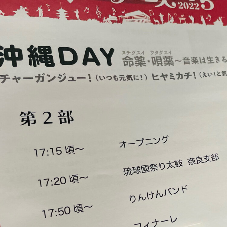 【ムジークフェストなら】〜6/5まで お寺や神社、街なかやイベントホールなど 奈良県の各所で音楽が鳴り響くイベントです 3年ぶりに開催されたので、そのひとつのイベントに参加して来ました✨ 5/28は奈良コンベンションホールが 沖縄デイとして、屋台と音楽で沖縄一色になりました😚 沖縄屋台コーナーは大人気で 沖縄焼きそば、サーターアンダギーなど …お目当ての食べ物は売り切れていたので グァバのジュース🍹で南国気分を盛り上げました 🎸🪘♬🎹🪕👏 創作エイサー集団『琉球国祭り太鼓奈良支部』 の演舞は、音楽と琉球空手を融合させたもの 迫力がありながらも小学生メンバーの愛らしさもありました🥰 照屋林賢さんが率いる『りんけんバンド』 島太鼓と三線にキーボード、ギター、ドラムスなどの現代楽器を融合させた「沖縄ポップ」は 沖縄言葉で唄われて、意味はわからないけど 唄っておられる表情から伝わるものがありました 観客の指笛、掛け声は禁止🙅 でも手拍子と、メンバーの振り付け通りに手を動かしたり、自由に両手をゆらゆらさせるカチャーシーで会場が一体となり『ちむどんどん』しましたよ🤩 #ムジークフェストなら は、2012年に始まった 音楽イベントです クラシックを中心に国内外の多種多様な音楽にスポットを当て 奈良らしい会場で演奏が繰り広げられます 期間中は有料・無料さまざまなかたちで毎日、どこかでコンサートが開かれています 来年もまた、無事に開催されますように🙏 #ヒーリング旅 #Myことりっぷ #りんけんバンド  #琉球国祭り太鼓 #エイサー