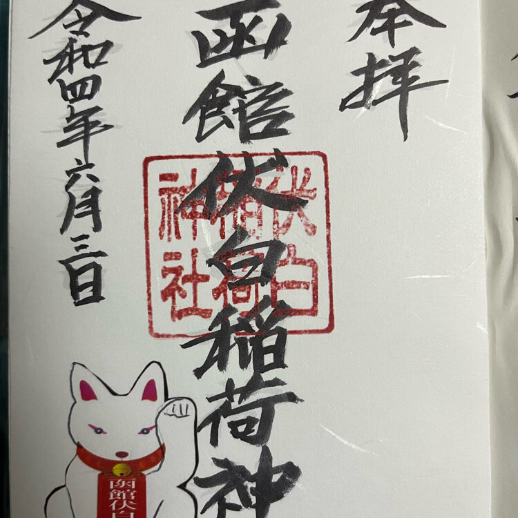 五稜郭公園を散歩した後は、そのまま歩いて近くの函館伏白稲荷神社へ向かいました。 鳥居や手水舎はあるけど、どこでお参りするんだろう?と建物に入ってみると中から人が出てきてくれました。 お参りする場所は2階にあるそうで、靴を脱いで中に入り2階に上がると立派な拝殿がありました🙂 今までテレビや本などで参拝の仕方を見てお参りしてましたが、先程中に入れてくれた方に参拝方法で疑問に思ったことを聞いてみました。 親切に説明してくださり、それに習ってお参りを済ませました。 どうやらこちらの建物は元々神社として建てられたものではないようで、違う目的のため建てられたものに後から神社として移転されたようです。 宮司さんの親族の方が購入した土地の中に古びた社を見つけて、まだ中に神様がいらっしゃるとの事できちんと奉ろうとこちらに社をつくり移したそうです。(うろ覚えですが確かその様な内容だったはず・・・💦) 中には当時見つけた時に一緒に出てきた出土品(太鼓や文机)や、こちらのお社が完成した時に撮った写真(光が線状になってあたかもお社に入ろうとしている様に見える)が飾ってありました。 お参り後は手厚いおもてなしを受け、お話をしたりしてるとあっという間に時間は過ぎて行きました。 最後に御朱印をいただいてこちらを後にしました。 おみくじの種類が多かったけど、お稲荷さんだから狐のおみくじを引きました。 おみくじ自体が白狐さんになっていてめんこかったです🦊 #ヒーリング旅 #春風さんぽ #Myことりっぷ #函館 #函館伏白稲荷神社#御朱印#おみくじ