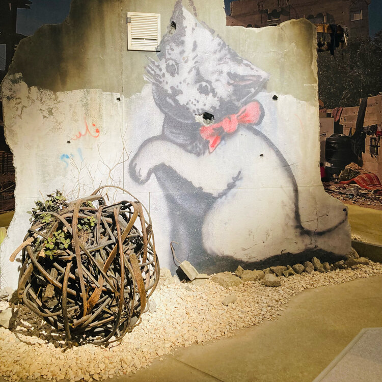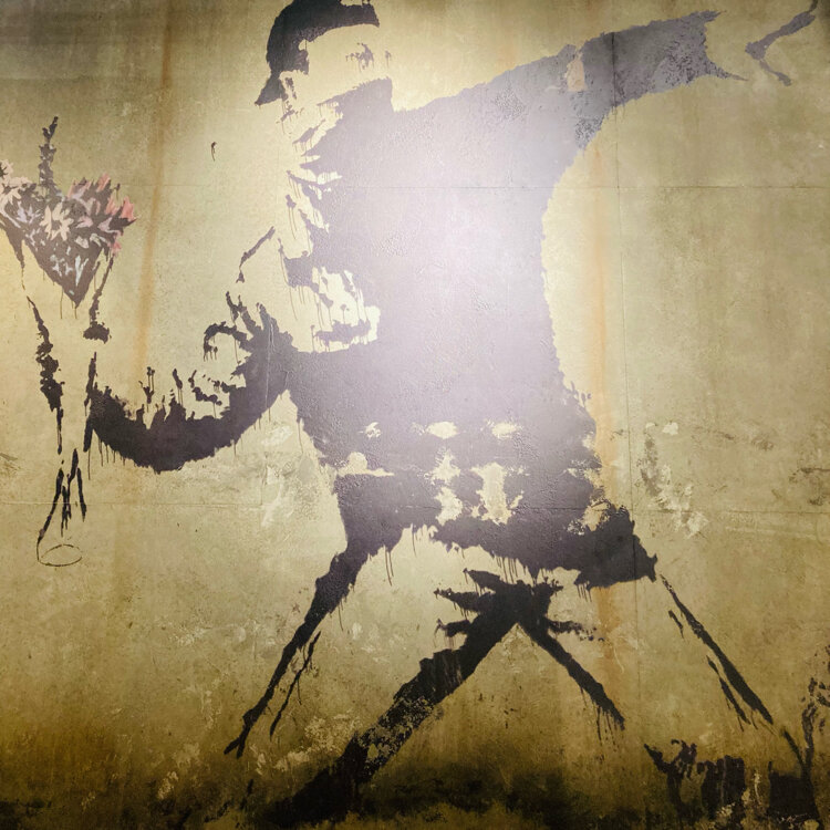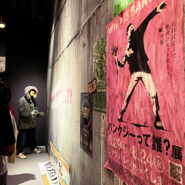 #私のことりっぷ2022 #アートみたいな景色 #Myことりっぷ #BANKSY            ✳︎ #ビッグパレットふくしま で開催中の 『Who is BANKSY ?』 『バンクシーって誰?』展へ行ってきました😆            ✳︎ 正体不明の覆面アーティスト👨‍🎨 風刺画的な作品は賛否両論ありますが 自分の中でも未だ捉え方も分からず🤔 ただ、この展示会は まるで映画🎬🎞のセットのように 描かれた街角や、戦場を再現した展示方法で まずそれに興味を惹かれました✨            ✳︎ 暗幕の中へ一歩踏み込むと 海外の街並みが現れ、BGMは都会の雑踏の音👂 行き交う車のクラクションに 本当にスクリーンの中に入り込んだ様🥹✨ 足元は平行なのに、奥行きのある壁画に とらわれ真っ直ぐ歩けない感覚に陥ります💦 頑張れ、私の三半規管😂            ✳︎ 写真1枚目 Girl with Balloonや 2枚目Love Is In The Airは 平和運動のアイコンとなり 代表的な作品だと思いますが 写真3枚目フェルメールの真珠の耳飾りの少女や 4枚目ミュージカル レ・ミゼラブルのポスターを 基にした壁画は 恥ずかしながら知りませんでした💦 同じく今日の今日まで知らなかった 写真5枚目 Giant Kitten …廃墟と化したガザ地区に残した壁画。 SNSはガザの悲惨な現実より子猫の写真ばかり。 世間の注目を集めるために描いた事で 国際的な支援団体が次々名乗りをあげた…            ✳︎ なるほど。 アーティスト、表現者として型破りではあるけど 確実に世界を動かしている。 とても興味がわきました🤔            ✳︎ もちろんARTの捉え方は十人十色 正解や間違いがあるわけではありません😌 ただ、どんな作品を残し 何を叫びたかったのかもう少し知りたい、と。 バンクシーって、誰? 改めて思いました☺️ 郡山での展示会は8月24日まで。