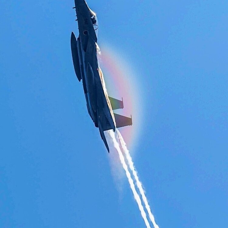 ✈️静岡県 焼津市 航空自衛隊静浜基地🌞航空祭2022 おりゃベリ大好きなあの🌟ユーザーさんから、虹の投稿を暗に勧められたのでしておきましょうꉂꉂ(ˊᗜˋ*) トップガン=マーベリック=観ましたか? 自分は古いトップガンばかり最近5回くらい観ました笑 そんなに飛行機大好き(*'▽'*)って訳では無いのですが、航空祭は音速のジェット戦闘機が轟音と共に目の前を飛び、大迫力でした😲✨ これはかっこいいです!! 飛行機が高速で飛ぶと機体の周りが減圧されヴェイパーと呼ばれる水蒸気が雲のように発生することがあります☝ 飛行機撮るのは完全に素人ですが、ヴェイパーに太陽が当たり弧を描いた虹が機体に掛かった珍しい写真が撮れました👀 アートっぽいし虹の日だし、ことりっぷっぽくないけれど、ファンタジーかメルヘンか分かりませんがpostしておきます😁 🔹🔸🔹✈🔸🔹🌈🔸🌈🔹🔸✈🔹🔸🔹 ①②③📷同じ機体です。 急上昇と飛び去る姿と着陸体勢です🛬 ④⑤📷同じ機になります。 4はヴェイパー引いてますね、そして後ろの雲が何かに見えませんか? 自分にはカメレオン(後頭部)に見えて仕方がありません😆#雲図鑑 (2022年5月22日撮影) #静岡県 #焼津市 #航空自衛隊静浜基地 #航空祭 #虹 #アートみたいな景色 #Myことりっぷ