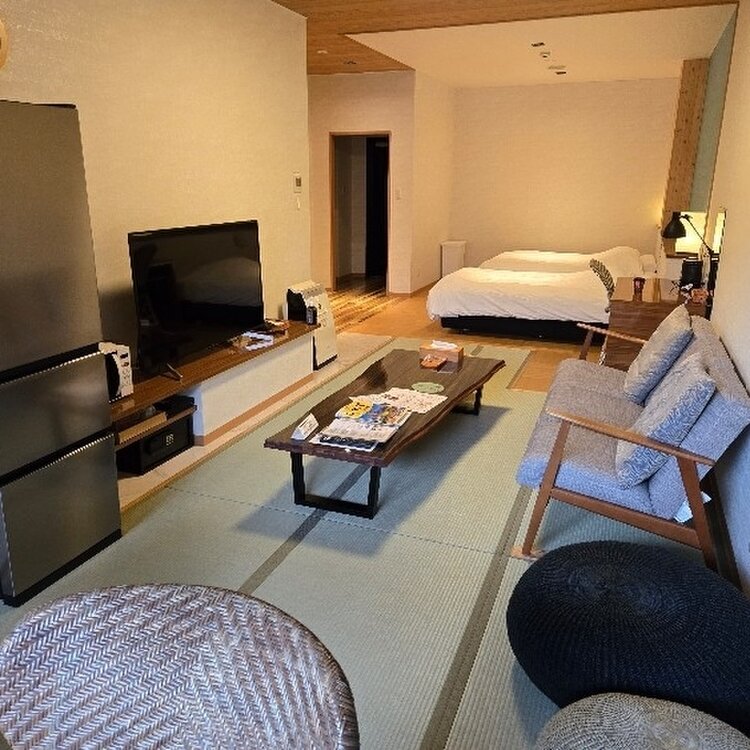 全室にテラスと源泉掛け流し風呂が付いた大人の為の宿。併設の優香苑となごみの湯大浴場も利用可能。