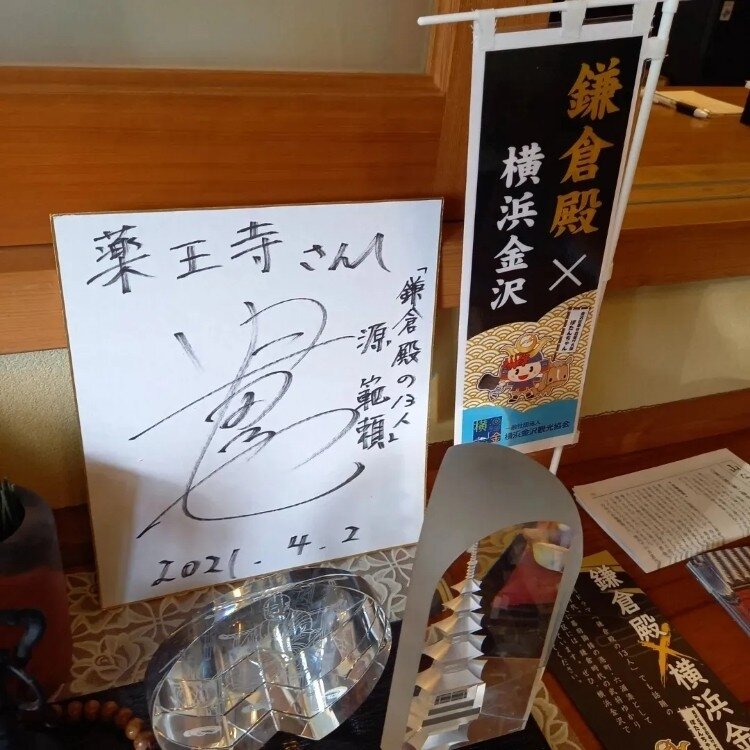 金沢文庫と言えば。 神奈川県横浜市にある金沢文庫は古くから高級住宅地として知られています。 そして現大河ドラマの鎌倉に続く舞台の地でもあります。 特に有名なのが北条義時の孫が造った庭園もある称名寺ですが今回は省略🙇‍♀️ 鎌倉殿の13人トークショーin横須賀で源頼朝公の弟の1人である範頼公を演じた迫田孝也さんが「修善寺で撃たれたはずの範頼公は実は今の金沢文庫界隈に逃げて生きていた」説を話していました。 その話を検証すべく称名寺すぐ目の前の薬王寺様へ行きましたら、範頼公を弔う五輪塔がありました。 金沢文庫から山の方へ行くとある大寧寺には位牌もあるとか。。 吾妻鏡を読むとどうしても北条寄りになってしまいますが、伝承にて蒲殿は修善寺を逃げて金沢文庫に来たかもしれない、義経公は平泉からもっと北に行った~という話もあってもいいなと思います。 大河ドラマも佳境に入ってきましたが、これで終わらず学びを深めたいです。 期間限定ですが横浜金沢観光協会のアプリのスタンプラリーも面白いです。 薬王寺では迫田さんのサインを見ていたらお菓子も頂き感激しました。 ちなみに、この辺りは畠山重忠公の所領でもあり、開山した東光禅寺もあります。義時の所領になっちゃって😠 #大河ドラマ #鎌倉殿の13人