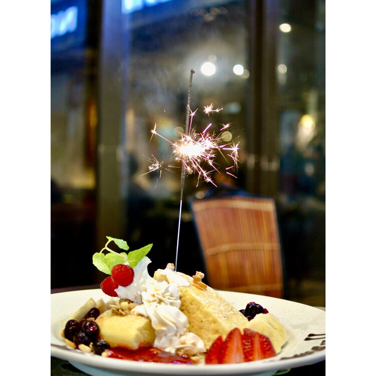 【CAFE NOISE】(カフェ ノイズ) 池袋サンシャインシティ地下1階にあるカフェ&ダイニングです。 写真1枚目のパンケーキが食べたくて行って来ました。 * 📷①Merry Christmas !!ってメッセージを入れてもらったら 🎇🥞花火と共に登場🤣 ひとりでクリスマスをお祝いしました*↟⍋*↟ 📷②3種のベリーのパンケーキ🍓🫐🍓 外はカリッ、中はもちもちの新食感パンケーキは必食です😊 ものすごくおっきいです!!!ヽ(´▽`)/ズバ-ン!!笑 📷③🍽ランチコース(ドリンク付き)にしたので前菜は2皿 𓌉◯𓇋サーモンのレモンカルパッチョ 𓌉◯𓇋トマトとチェリーモッツァレラのサラダ メインは9種類の中から選べます。 𓌉◯𓇋オムライスBOULにしました これだけでもお腹いっぱいでしたよ(〃´o`)フゥ… * 📷④巨大なアートウォールのあるオシャレな店内には高音質な音楽が流れていました•*¨*•.¸¸♬•*¨*•.¸¸♪ なのにあえてのテラス席の私😅 📷⑤地下一階だけど 明るく開放感あり 赤いひさしの外観はパリの街角のようです🌹 * ノイズさんで𓌉🥞𓇋 ‎パンケーキ付きの満足ランチを召し上がれ〰️😋🍴💕 色んなAnniversaryメッセージを入れて貰えますよ🎊(要予約) 📷2022.11.30 * #ファンタジーの世界 #Myことりっぷ #ことりっぷ東京 #池袋 #サンシャインシティ #サンシャインシティアルパ #カフェノイズ #池袋ランチ #東京ランチ #パンケーキ #毎日がメリークリスマス #ハッピーメリークリスマス #カメラ #お写ルン歩 #fumitubu #ふみつぶ〜ぬ #ひとりクリスマス
