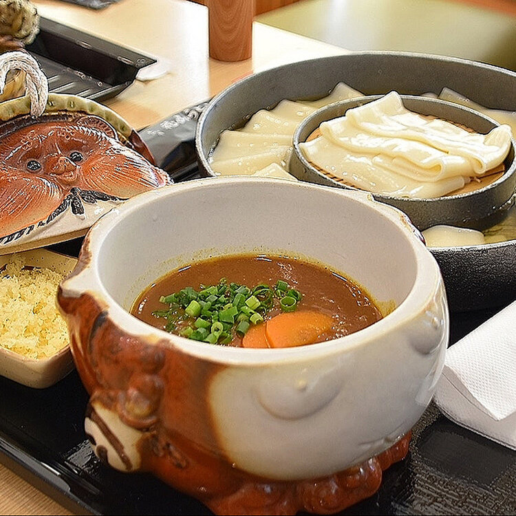 【花山うどん本店】 . グンマーソウルフードの一つ「ひもかわうどん」 その中でも、館林市の『花山うどん』さんは 2013年〜2015年に行われた うどん日本一決定選手権U-1グランプリで 3年連続日本一に輝いた事で 全国のうどん好きさん達にその名を知らしめ、県内のみならず 遠方からも訪れる人が多い人気店となりました。 本店では、お食事処の隣に売店もあるので 贈答用やお土産用のひもかわうどんも購入できます。 . 幅広いうどんと言えば 「ほうとう」や「おっ切り込み」が思い浮かびますが それらとは似て非なるもの! とても薄っぺらくて、表面はツヤツヤ✨ 薄いのにコシのあるモチモチの幅広うどんは噛めば噛むほど小麦の味が感じられて、 喉越し良くつるん!っと食べられます。 シンプルに食べるのもオススメですが 花山うどんさんオリジナルの 『丸ごと玉葱の南極カレーつけ鬼ひも川』も 玉ねぎの甘味とスパイスの効いたカレーとモチモチの幅広うどんの相性抜群❣️ 館林のシンボルでもある「タヌキ」の器もお茶目です🤭 . 銀座店、日本橋店に引き続き 2023年1月31日には 『羽田エアポートガーデン店』がオープンしました。 それぞれの店舗によって 限定メニューもあるそうです。 . . #Myことりっぷ #群馬#館林#花山うどん #ひもかわ#うどん #館林土産 #花山うどん本店 #メン食いくらぶ . . #羽田エアポートガーデン店 2023年1月31日NEW open