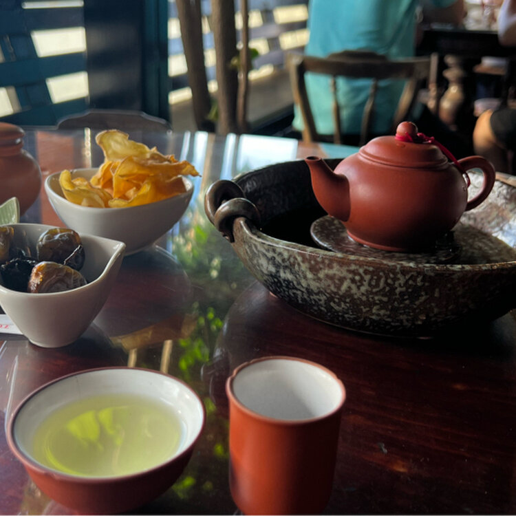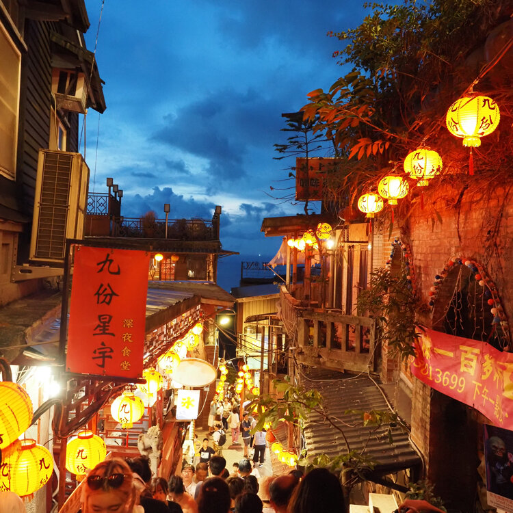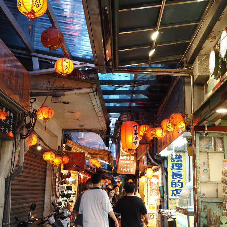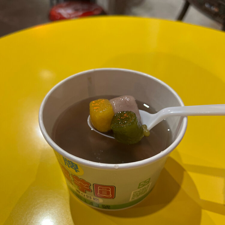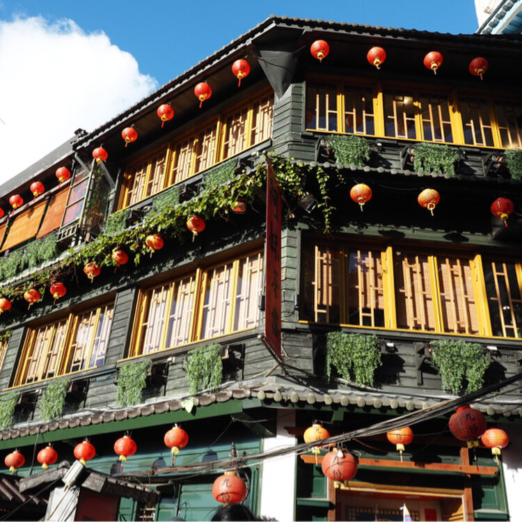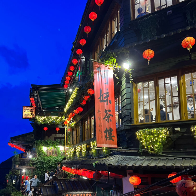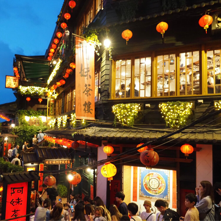 ◼︎台湾旅行 4泊5日 〜4日目 後編〜 午後から九份へ🏮 台北からバスに乗って1時間ほどでした🚌 バス停すぐの所から お土産屋さんや食べ物屋さんが立ち並ぶ 通りの入り口があります。 細い通りに沢山の人が密集していて、 向かう人と向こうから来る人の列で ぎゅうぎゅうでした。 ◇ 阿珠雪在焼(ピーナッツアイスクレープ) もちもちしたクレープ生地に、 ピーナッツの飴を削ったものと シャーベットタイプのアイスを乗せて 包んだものです🥜 パクチーを入れるか聞かれるのですが、 私はパクチー入りにしました🌿 注文するとその場で作ってくれて、 渡す前に 写真を撮りやすいように お皿を見えやすく持ってくれます🤳 アイスは何味か分からなかったのですが あっさりした味でした。 可もなく不可もなく…といった感想でした😅 ◇九份茶樓 某アニメ映画のモデルとされている 阿妹茶樓は大行列だったため、 こちらのお店に行ってみました。 待ち時間はありましたが、 お茶屋さんの下で 茶器の販売や展示がされていて それらを見ながら待つことができます。 お茶とお茶菓子に茶梅をいただきました🍵 茶器や店内の装飾が可愛かったです💓 ◇ 豎崎路 階段が続く通りで、 「九份と言えば」な写真が撮れるスポットです📷 その分人も多く、 ゆっくり写真を撮ることは出来ませんでしたが、 階段に沿ってランタンが並ぶ景色は ノスタルジックでとても素敵でした✨ 夕暮れ時のランタンが点灯してからが 特におすすめです。 ずっと行ってみたかった九份に行けて 大満足です。 台北にホテルを取っていると 終バスの時間があり 夜まで滞在することは難しいため、 九份に1泊してゆっくり夜の観光をするのも 良さそうです。 まだまだ食べてみたいものや 行きたいところがあるので、 またいつか台湾に行きたいです🇹🇼 マンゴーかき氷のある夏や、 今回行けなかった台南など 魅力はまだまだありますね😊✨