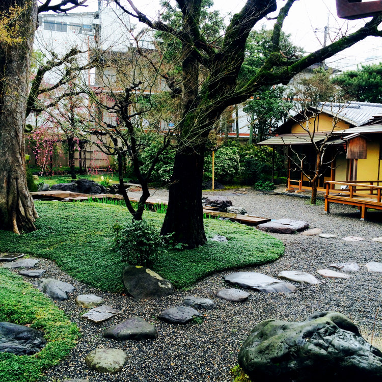 自然と歴史を伝える緑豊かな東山に位置。コンテンポラリージャパニーズをコンセプトにデザインの館内