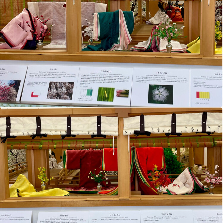 < 春の京都を楽しむ > 〜 ユーザーさんと 〜 「京都風俗博物館」 「源氏物語」の世界を1/4スケールの寝殿模型と人形を使って展開することで、平安時代を立体的に体感できる博物館。 光源氏35歳の頃の大邸宅・六條院春の御殿の「寝殿」と「東の対」の二つの建物を舞台に、物語が繰り広げられています。光源氏や恋の相手となる姫君たちだけでなく、女房たちの仕事ぶりなど細部まで見せているので、当時の貴族たちの暮らしを知ることが出来ます。また「竹取物語」の「かぐや姫の昇天」(最後の写真)が展示されていて、物語が描かれた平安初期の衣装を忠実に再現しています。 大河ドラマ「光る君へ」の影響で、「源氏物語」の世界に興味津々のユーザーさんに誘われて行って来ました。 「源氏物語~六條院の生活~」と題した「源氏物語」の様々なシーンの具現展示の細かでレベルの高い再現度に驚くばかりでした。 大和和紀さんの漫画「あさきゆめみし」が好きだった私も平安時代の絢爛豪華な装束や季節に合わせた美しい調度品や装飾にワクワクでした。 等身大の女性衣裳の展示や四季折々の自然の美を色の重ね方で細やかに表現した様々な「かさね色目」の紹介に平安時代の人々の美意識の高さを感じました。 #春の京都を楽しむ#ユーザーさんと#風俗博物館#源氏物語#竹取物語#私のことりっぷ旅#春色さがし