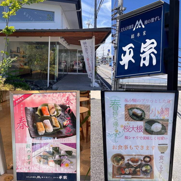 GW💛奈良旅(5/2-4) 柿の葉ずし 平宗 奈良市内のホテルから桜井市の長谷寺への移動中、お昼をどうしようか考えていたところ、ステキな店構えの柿の葉ずし屋さんを発見して引き返しました😃 テイクアウトして長谷寺へのお参り前に車中でいただきました! 柿の葉ずし 平宗 便利館 さん 奈良県天理市中町217-2 国道24号線沿い 皆、自分の食べたい柿の葉ずしをオーダー! 私は、金目鯛と漬けマグロ、筍にしました。 +けつね巻き 一口サイズでお稲荷さんみたいなのが美味しかった!湯葉で巻き、薄いお揚げさんで包まれていました。 Web見ても載ってないですがオススメです👍 次回は柿の葉ずし手作り体験してみたいです😊 ▽便利館例 所要時間45分 鯖・鮭8個の場合:1人2,000円(税込) 鯖・鮭12個の場合:1人 2,600円(税込) ローストビーフの柿の葉ずしも食べてみたかった。 東京に店舗があるか確認したところ、なんと玉川高島屋さんに🙌 でもローストビーフや一口稲荷風のは置いてなくて今度聞いてみようと思います。 https://hiraso.jp _φ(・_・ 老舗 マルカン酢 徳川時代は「酒は正宗。酢は丸勘」といわれるほど。