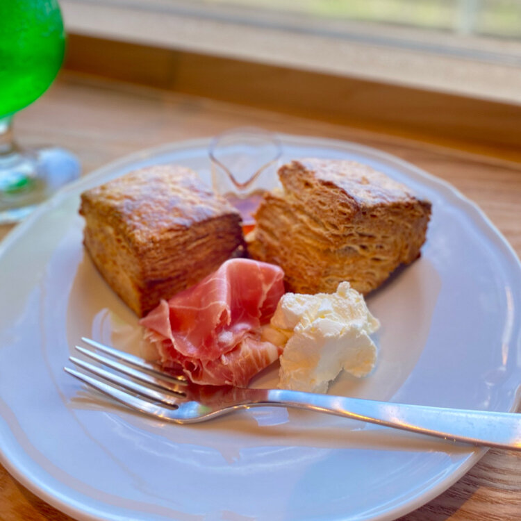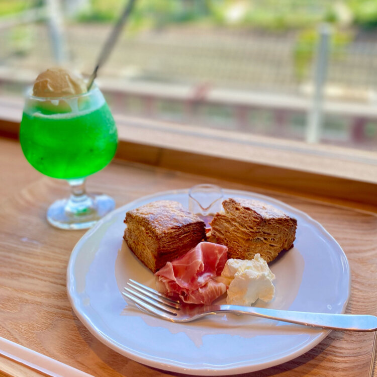📍siji oyamazaki-シジ大山崎 大山崎に7月にオープンしたカフェ☕️ シジ大山崎さんは月曜、火曜と土曜、日 (土日は席数限られてます) それ以外はヘアサロンと言う二足の草鞋のお店です☕️✂️ * 前回からの生ハム繋がりでの投稿です😁 ランチを兼ねて選んだメニューが スコーンの生ハムとクリームチーズ🧀メープルシロップ添えとクリームソーダ🥤😊 * このスコーンが只者ではなく✨ サクサクを通り越してバリバリと それが何層にもなっていて 噛めば噛むほど バターが香ってじんわり甘く ハムとチーズとメープルの あまじょっぱさがたまらない 絶品な美味しさでした😊🩷 * 美味しさを噛み締めたあと メロンソーダを飲みながら見える景色は 目の前を阪急電車が🚃 奥にはJR京都線🚃 その奥には新幹線も見える 抜群のロケーションです😊 * 古民家をリノベーションされた雰囲気も 隠れ家みたいで(実際に一回見つけられずに 帰りました😅)とってものんびりとできるので また行ってみたいお店です😊 * JR、阪急ともに駅から徒歩で10分くらい🚶 近くにはアサヒビール大山崎美術館もありますので 帰りに寄るのもいいですね😊🩷 #京都カフェ #大山崎カフェ #スコーン #メロンソーダ #ことりっぷ旅2024 #透明の世界 #ゆるさた鉄子