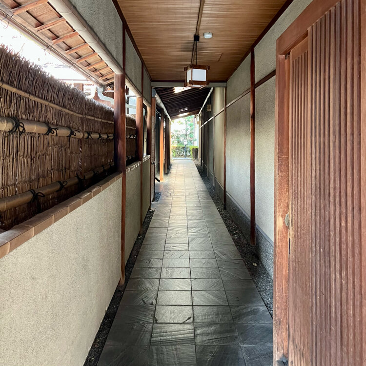 自然と歴史を伝える緑豊かな東山に位置。コンテンポラリージャパニーズをコンセプトにデザインの館内