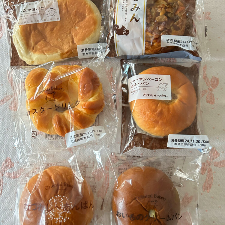 「オリエンタルベーカリー直売所」 関西圏シェアNo.1の業務用パンメーカーで、学校、病院、ホテル、喫茶店などに納入されています。 直営店は、大阪、京都、兵庫に7つ有ります。 「難波八阪神社」にお詣りしてホテルに戻る途中に「大阪直売店」を見つけました。 「オリエンタルベーカリー」さんのパンは、薬局や小売店で見かける事が有って、素朴な感じが結構好きです。 朝8時からオープンしていて、年中無休だそうで、先客が何人かいらっしゃいました。 お店の外には、自動販売機も有って、賞味期限が近いパンがお得なセットになって、並んでいました。 お店の中にも沢山の種類のパンやバームクーヘンやアップルパイなどのスイーツ系も有りました。 賞味期限が2日後のお得な菓子パン4個セット(ハムマヨパニーニ、カスタードリング、お芋のクリームパン、なつかし〜あんぱん)と、朝ごはんに主人がジャーマンベーコンポテトパン、私がくるみん(メープル味のパンにキャラメルクリームとクルミの絶妙な組み合わせ、写真5枚目)を買いました。 6個で639円のお支払いでした。 サンドイッチとかも有ったので、近くだったら通いたいお店です。 #オリエンタルベーカリー#業務用パンメーカー#大阪直売店#お得菓子パンセット#パン好き便り