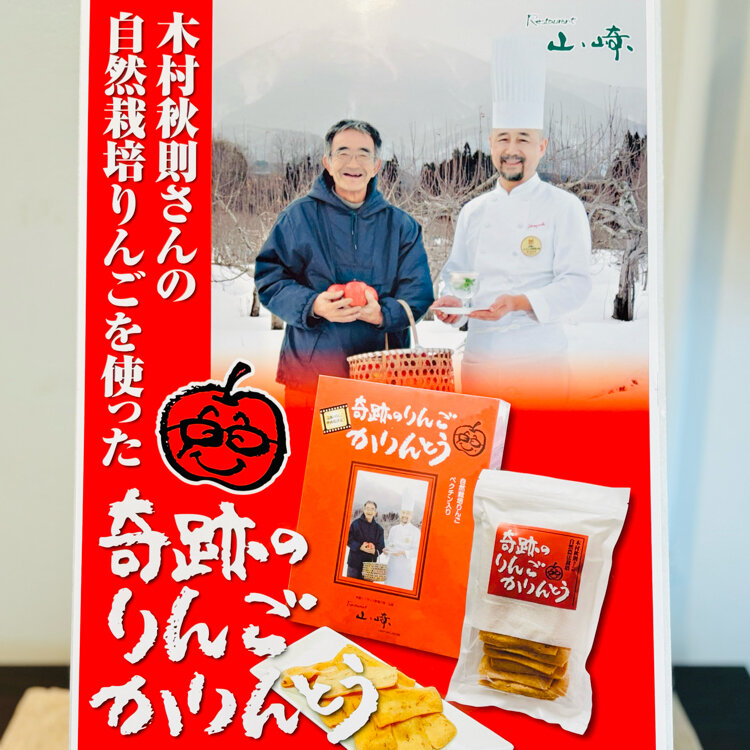 「レストラン山崎」直営の土産店。世界で初めて自然栽培に成功したりんごを、さまざまなスイーツ、健康食品として販売するほか、レストランオーナーシェフ山崎隆による青森県産品を使用した料理を冷凍食品として購入できる。