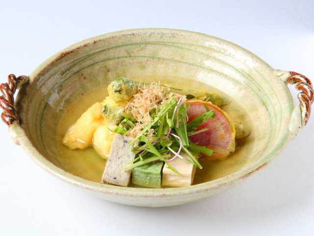 創業約70年の和装小物卸メーカーが自社の町家と蔵をリノベートし、カフェスイーツから居酒屋ごはん、バードリンクまで幅広いメニューを楽しめる場所に。名物の庭パフェは坪庭を眺めながらいただけばまた一興。