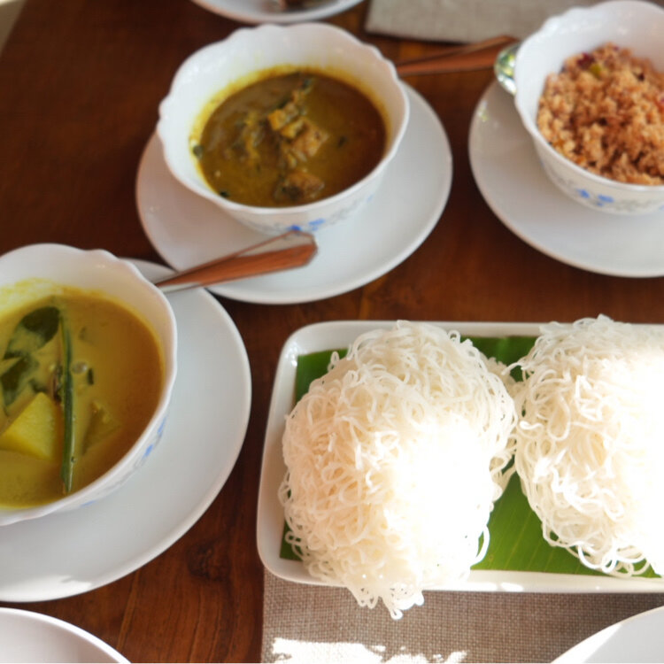 Kandalama Lodgeの朝🇱🇰☀️ 部屋を出てプールサイドを歩いてレストランへ。 木々の間から太陽の光が入るオープンエアの席で朝食をいただきました。 ここも最初はフルーツ盛合わせとフルーツジュース。 盛り付けも綺麗で、スターフルーツがかわいい⭐︎ 個人的にはスリランカのバナナはすごく好みでした。バナナはいくつか種類がありますが、どこで食べてもとてもおいしくて、少し酸味があるのでさっぱりしてています(種類によると思いますが)。 ・ このホテルは朝ごはんのメインを前日にメニューから選んでおくタイプでした。スリランカ料理もありますが、今まで泊まった中で初めてインターナショナル(コンチネンタル)メニューもありました。私は安定のカレー!カレー2種類(野菜、魚)とココナッツサンボル(スリランカでは超定番の副菜?ごはんのとも?で、辛くてちょっと酸っぱいココナッツフレーク。見た目は鮭フレーク笑)で、ごはんではなくストリングホッパーと一緒に食べます。ストリングホッパーはいわゆる米麺で、スリランカの朝食の定番らしいです。 フィッシュカレーがとってもおいしかったです♡ 同僚はパンケーキをオーダーしてましたがミニサイズで可愛く、カレーとの量の差!と思いましたが、日本だと普通の量です。しかも食べ終わる頃にお代わりの声かけがありました。パンケーキもお代わりできるのはびっくり。お腹いっぱいでお代わりは遠慮しましたが、コーヒーもエンドレスで注ぎに来てくれました😆 ・ 名残惜しいですがこちらの素敵なロッジも1泊のみ。 朝ごはんを終えてチェックアウトし、トゥクトゥクに乗って観光に向かいました。 #KandalamaLodge #dambulla #srilanka #カンダラマロッジ #ダンブッラ #スリランカ #ホテル #朝ごはん #モーニング #スリランカグルメ #世界のすてきホテル
