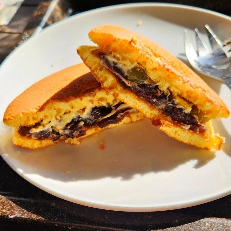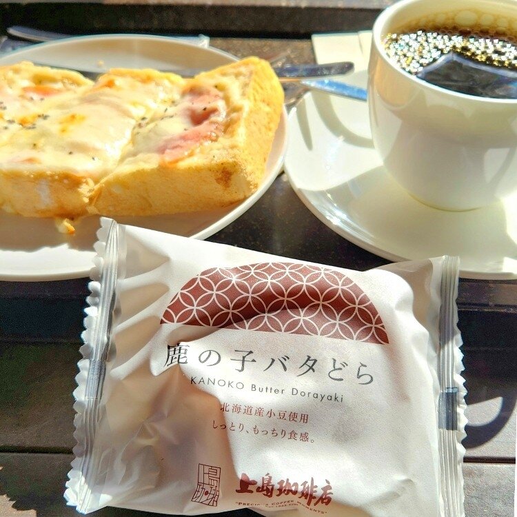 ☕️【上島珈琲店 黒田記念館店】🧇 芸大美術館の館内にもレストランあるけどホテルオークラ直営で食事はけっこうなお値段😅..... 🍰+☕ケーキとドリンクのセットで1200円だったので、こちらはリーズナブル❗ また、今度お茶するときに寄りましょ(^-^)/ じゃあ、上島珈琲店に行きましょうか 花見客で混んでいるかと思ったら意外にテラス席が空いていました。穴場なのかな❓ 芸大のクラシカルな建物と桜🌸が見られて、ここは当たり🎯 撮ってみると....あれ(゜∀。)コーヒー☕にKIRA☆KIRA☆✨したものが写り混んでいる。これ何(・・? 桜🌸が写っていたのかなぁ~?(・_・;? 鹿の子バタどらって何だろう❓ ちょっと切り口の断面がきれいじゃないんだけどお豆さん入り。美味しい😋 パッケージの裏に[かのこ豆]とあったので🔍してみたら... 「かのこ豆とは大納言や金時豆、ひよこ豆、うぐいす豆などの豆を蜜煮したもの。ふっくらとした炊き上がりで煮崩れしないで豆の形が残っている」 🫘豆、まめ、マメ....で鹿の子模様みたいだからかな❓ 豆好きなのよ~💕 子供のころから金時豆の煮物なんかパクパク食べちゃう(^p^) #アートな景色 #上島珈琲店 #東京芸大 #黒田記念館 #テラス席 #どら焼 #かのこ豆