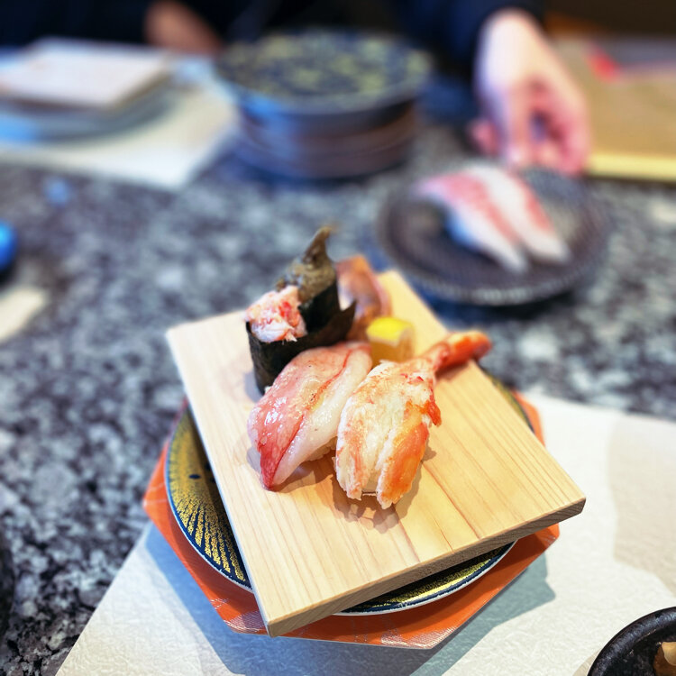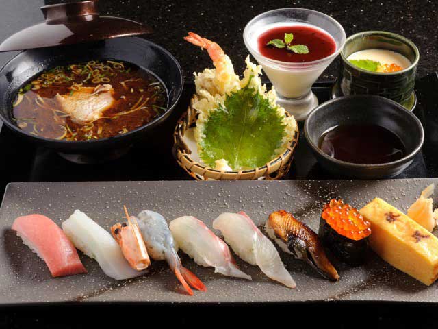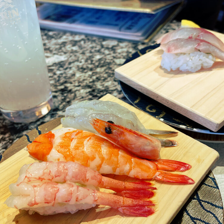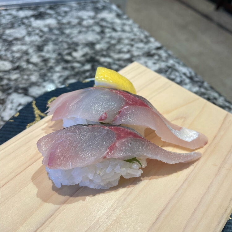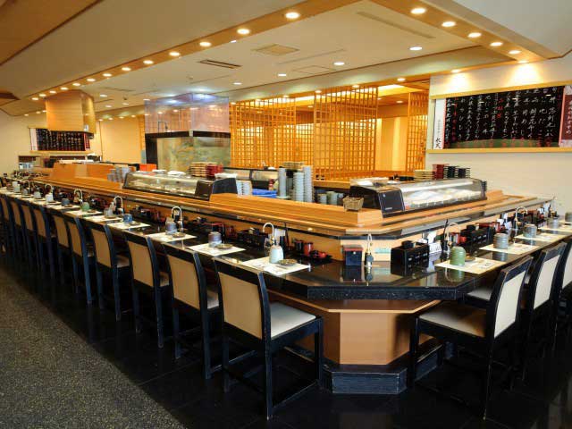 別府市場や佐伯、蒲江から魚介を直送する鮮度に自信ありの寿司店。職人が握る寿司ネタは100品以上、おすすめは青身三昧や白身三昧の1皿に3貫乗った寿司。広めに空間をとった席がくつろげる。
