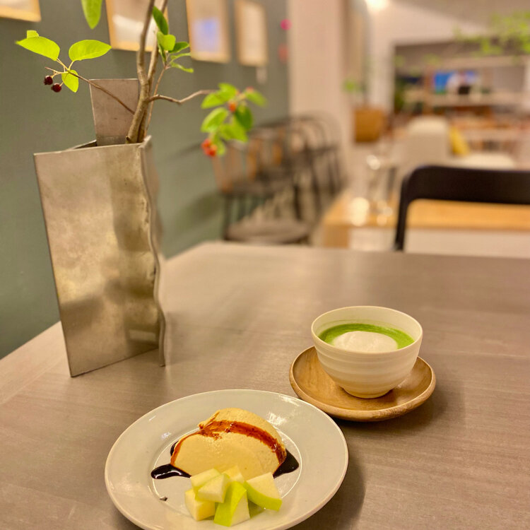 📍[Cafe DOnG by Sfera) カフェ巡りの2軒目は こちらも祇園白川の隠れ家のようなカフェ☕️ 地図アプリを見ながら行ったのに 前を3往復してやっと入り口に気がついた😅 木々に囲まれたカフェでした🌳☕️🍰 * また、その入り口とはガラッとイメージが 変わる店内は広々としていて✨ テーブル席とお座敷席に分かれていて 『お座敷以外のお好きな席にどうぞ』と 案内していただいたので😊 全体が見渡せるテーブル席に座らせて いただきました😊 * インテリアブランドのお店、スフェラさんが 手掛けられたカフェだそうで 大ぶりの枝ものが惜しげなく活けられていたりして 素敵な家具や絵画など空間も楽しめるカフェでした😊 * 毎週金曜日に京都で予約しないと買えない 和菓子屋さん『嘯月』さんの和菓子セットが 食べられるとの事で🩷 売り切れを心配して早く行ったら まさかの『まだ届いてない』でした😂 待ってもよかったのですが こちらも予約が取りにくい西院のの料理店「Maker」の プリンがありましたのでプリンに🍮 コクのあるプリンの味わいと添えられ青リンゴが 爽やかで✨ほろ苦いカラメルとが良く合いました🩷 * 最後の写真は人気のテラス席です♪ ここはまるで森の中のようでした😊 カフェ難民になったら 迷わずここにこようと思った 素敵カフェでした😊💓✨ #京都カフェ #祇園カフェ #京都スイーツ #プリン #飲み物は抹茶ソイラテ #カフェドンバイスフェラ