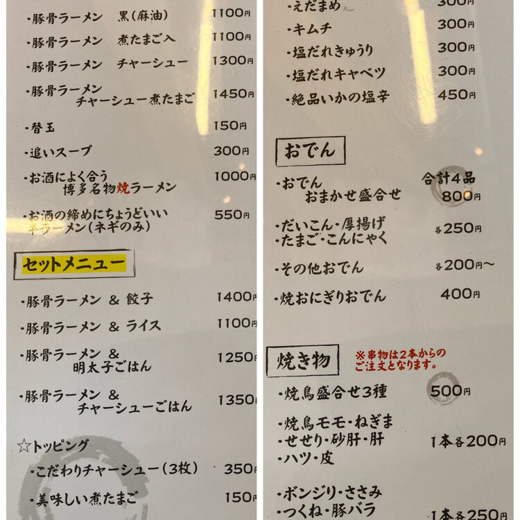 津 福岡博多屋台よかろーもんさん🥟🍜 先日津の屋台ラーメンは絶滅したような投稿をしましたが最近オープンした屋台があるとの情報をキャッチしたので行ってまいりました🫡 、 屋台よかろーもんさん🍜 、 ネット上にはインスタしか情報はないがどうやら餃子が美味いらしい😋 、 迷いなしで突撃です☺️🚀✨ 、 営業日は金土 昼3時間 夜3時間 の営業です☺️ 、 金曜日のお昼に到着🛬 、 3名が食べてます👀 ひとりは常連さんかな 、 🙋‍♂️よろしくおねがいしまーす 、 ラーメン🍜餃子🥟おでん🍢に1品料理🍳焼きラーメン🥘お酒もあります🍶☺️ 、 博多の屋台みたいにたくさんのメニューがあります🙂 、 では豚骨ラーメンと餃子をいただきましょう🙋‍♂️ 、 来ました🍜✨ 、 いただきます🙏☺️ 、 あ、おいしい☺️ 見た目は豚豚骨骨してるけどこちらの人でも美味しく食べれます😊徳島ラーメンぐらいの感じ 、 続いて餃子🥟さん入場です😊 油でツヤツヤです😂 、 🧑‍🍳「肉汁が出るので気をつけてください」 、 期待半分熱いの心配半分🫨 、 とりあえず解体してみます🥟⛏️😊 、 なんか流れ出て来ました🌊肉汁です🥹 、 おいしいかも😊 、 夜に行っておでんとか焼きラーメンとか食べてビール飲みたいって思いました😊 、 #あきらの東海 、 #あきらの麺類 、 #あきらの餃子