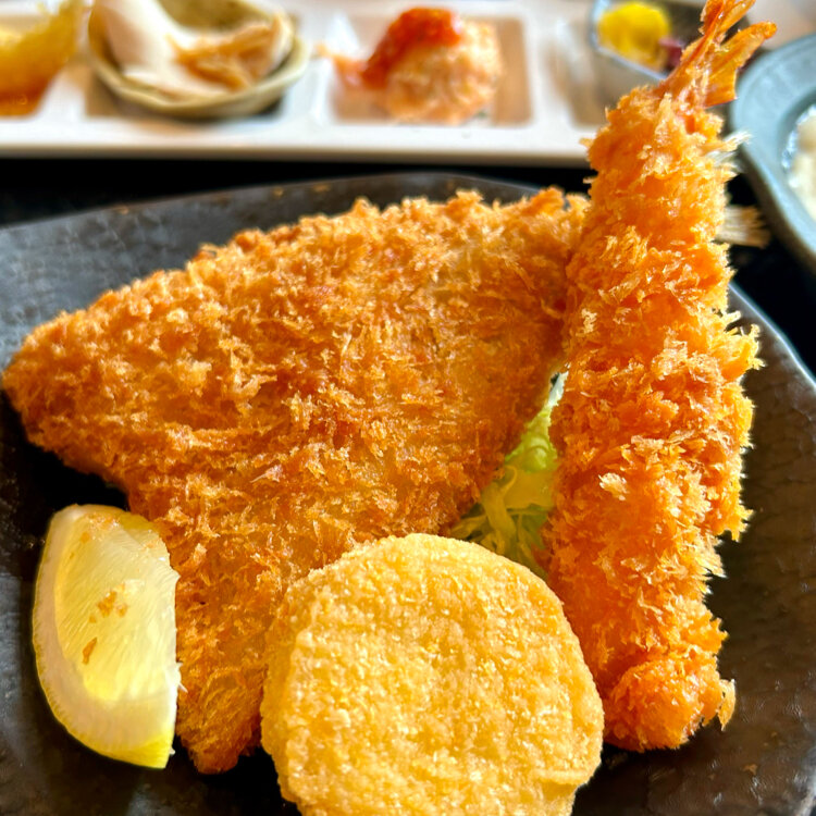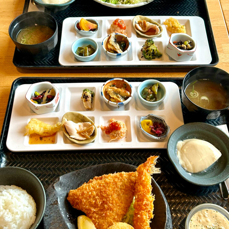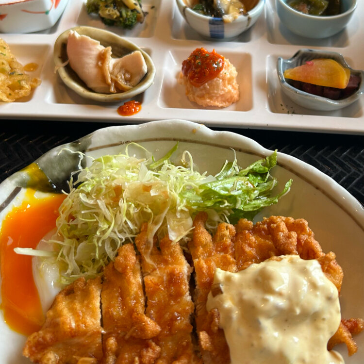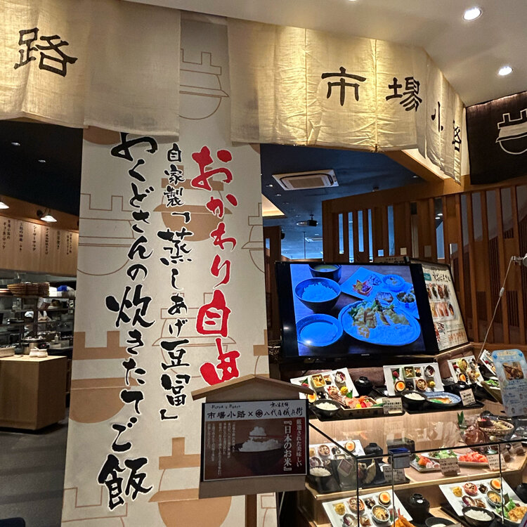 「市場小路」 *海鮮ミックスフライ ・アジ、エビ、北海柱 *チキン南蛮 ⭐︎季節のおばんざいプレート(8種類)、自家製蒸しあげ豆冨、ご飯、味噌汁付き 映画「フロントライン」を観る前に、早目のランチを京都の老舗「スター食堂」さんがプロデュースするおくどさんとおばんざい 「市場小路 イオンモール京都桂川店」で頂きました。 産地直送の旬のお魚と、おくどさんの炊きたてごはん、おばんざいが自慢のお店です。 私は、西京焼きと迷ったのですが、アジフライが食べたくて、海鮮ミックスフライにしました。アジは身太くて、エビはぷりぷり、自家製のタルタルソースをたっぷりつけて美味しく頂きました。 友達が食べたチキン南蛮は、柔らかくてジューシー、とても美味しかったそうです。 店内で蒸し上げるおぼろ豆冨は、大豆の味が濃くて、つるんと口触りが良く、おかわり自由なので、3回おかわりしました。 ご飯は、京都の老舗・米料亭八代目儀兵衛のお米マイスターが目利きし、丁寧な精米により最高の喉越しとなった「厳選米」を使用して、随時店内で炊き上げるので、ホカホカで、こちらもおかわり出来ます。そのままで十分美味しいのですが、最後に鰻と夏野菜のねばねばサラダをごはんに乗せて頂きました。 食べたいメニューが色々有ったので、またお邪魔したいと思います。 #市場小路#スター食堂#海鮮ミックスフライ#チキン南蛮#季節のおばんざい#蒸しあげ豆冨#米料亭八代目儀兵衛#ご馳走様#フロントライン感動