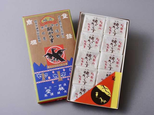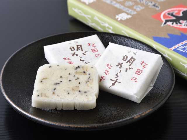 遠野銘菓「明がらす」の元祖として知られる老舗和菓子店。米粉の生地にくるみとごまを練り込んだ菓子の断面が、明け方の空を飛ぶカラスに似ていることから命名された。